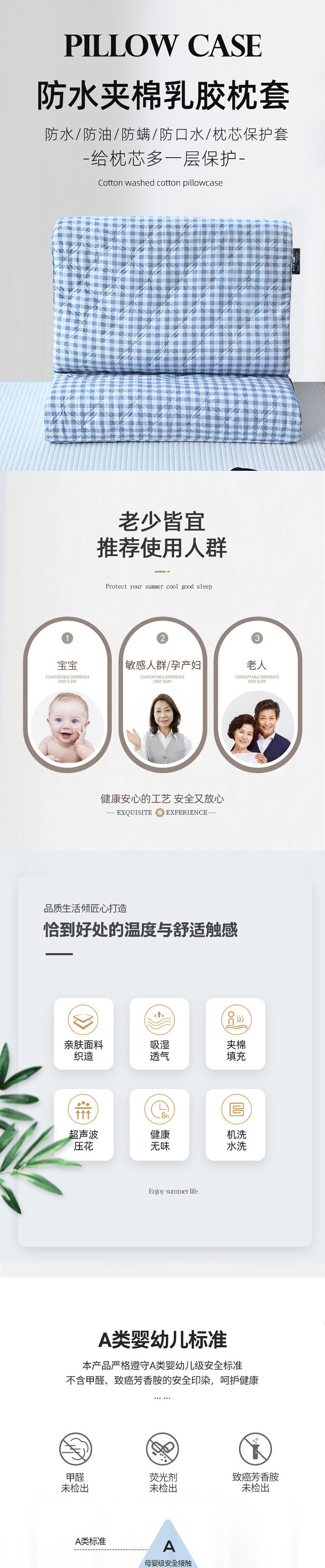 클래스 A 라텍스 베개 커버 방수 및 내유성 라텍스 베개 범용 40x60 어린이 30x50 특수 35x55스토어 가기
