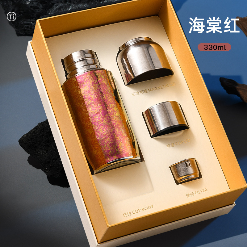 여성용 티타늄 컵 순수 티타늄 보온병 소형 2025 신형 고급스러운 완전 티타늄 자석 흡착 순수 티타늄 물컵 선물