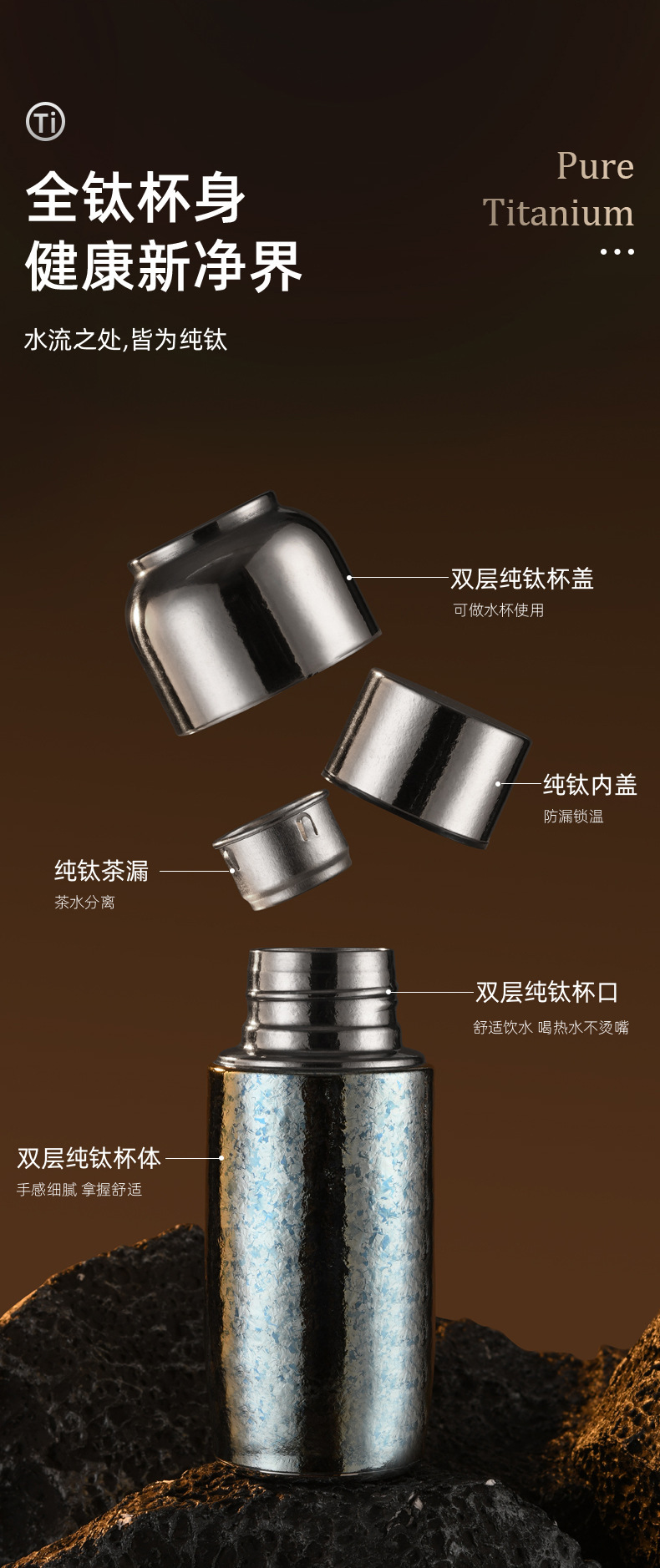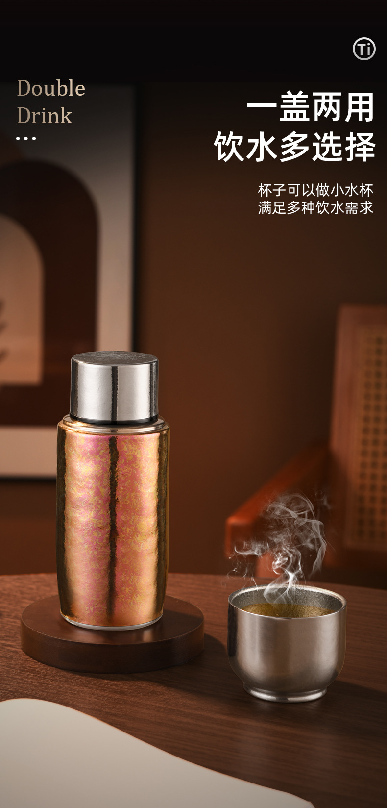 여성용 티타늄 컵 순수 티타늄 보온병 소형 2025 신형 고급스러운 완전 티타늄 자석 흡착 순수 티타늄 물컵 선물스토어 가기