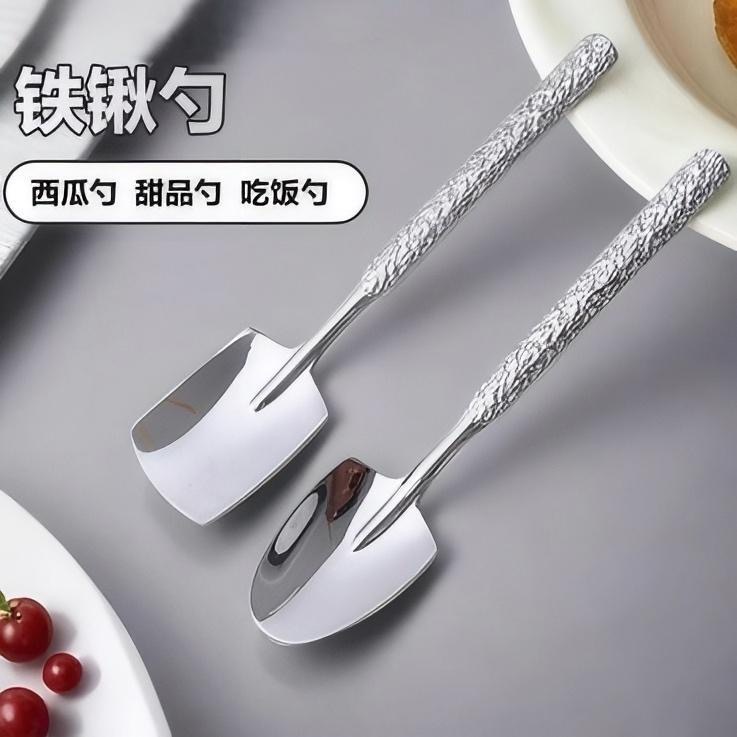 스테인레스 스틸 스푼 해머 패턴 삽 스푼 창조적 인 빈티지 수박 디저트 아이스크림 스푼 두꺼운 사이버 인기 귀여운 작은 숟가락