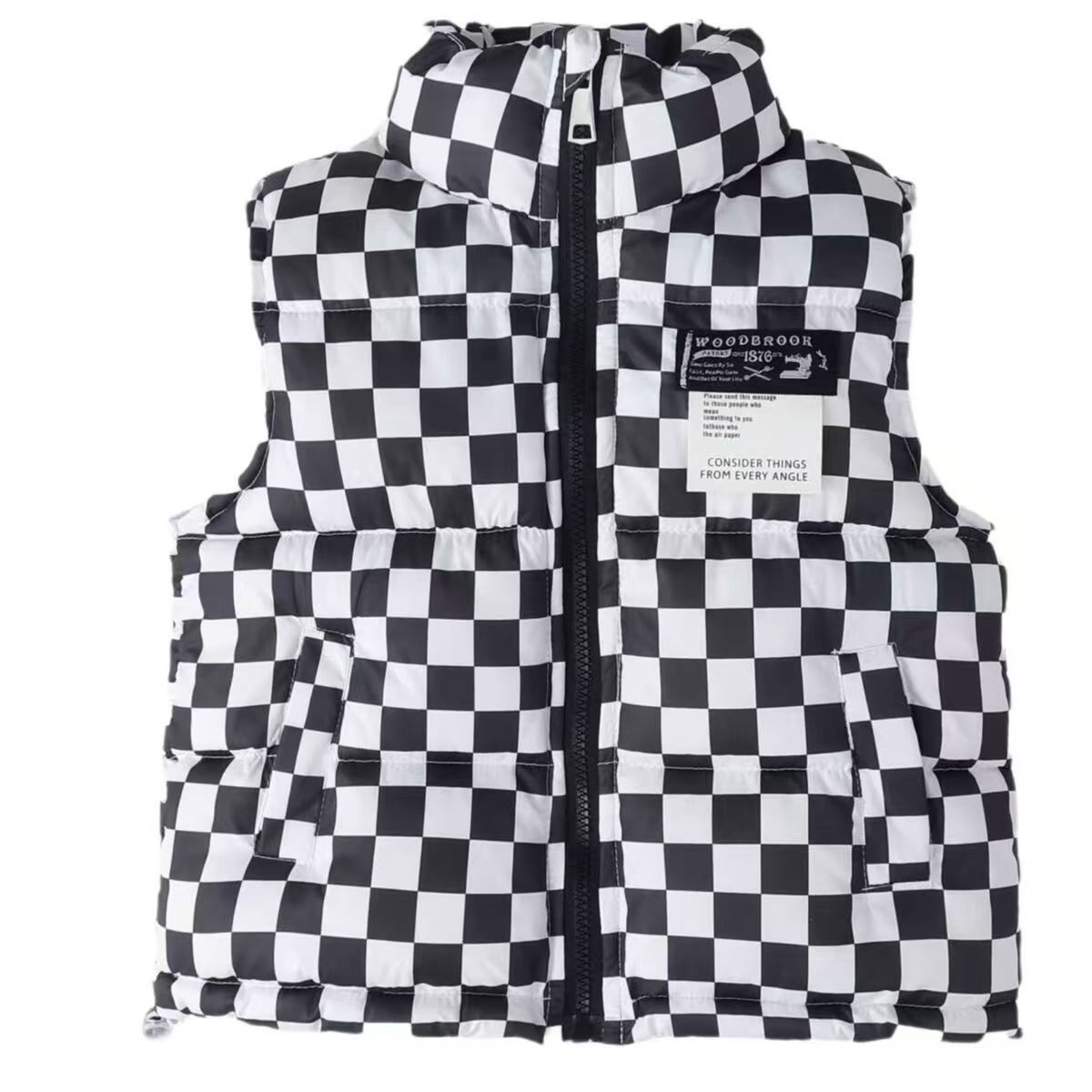 중소형 어린이를 위한 새로운 아동용 면 조끼, 스탠드 칼라 조끼, 지퍼, 겨울용 가볍고 얇은 격자 무늬 면 코트