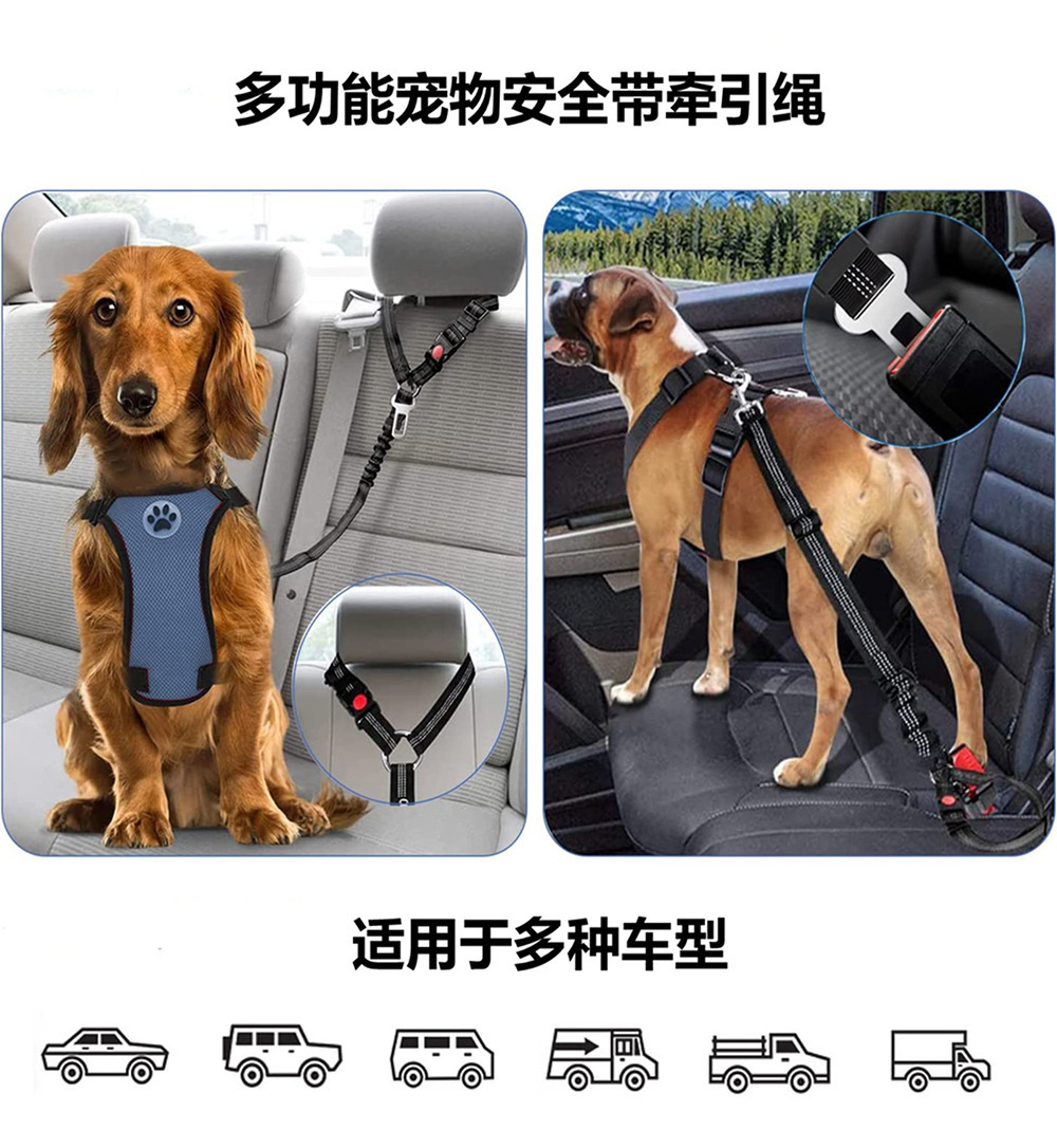 애완 동물 자동차 반사 안전 벨트 다기능 탄성 텔레스코픽 벨트 개 로프 대형 및 중형 개 폭발 방지 견인 로프스토어 가기