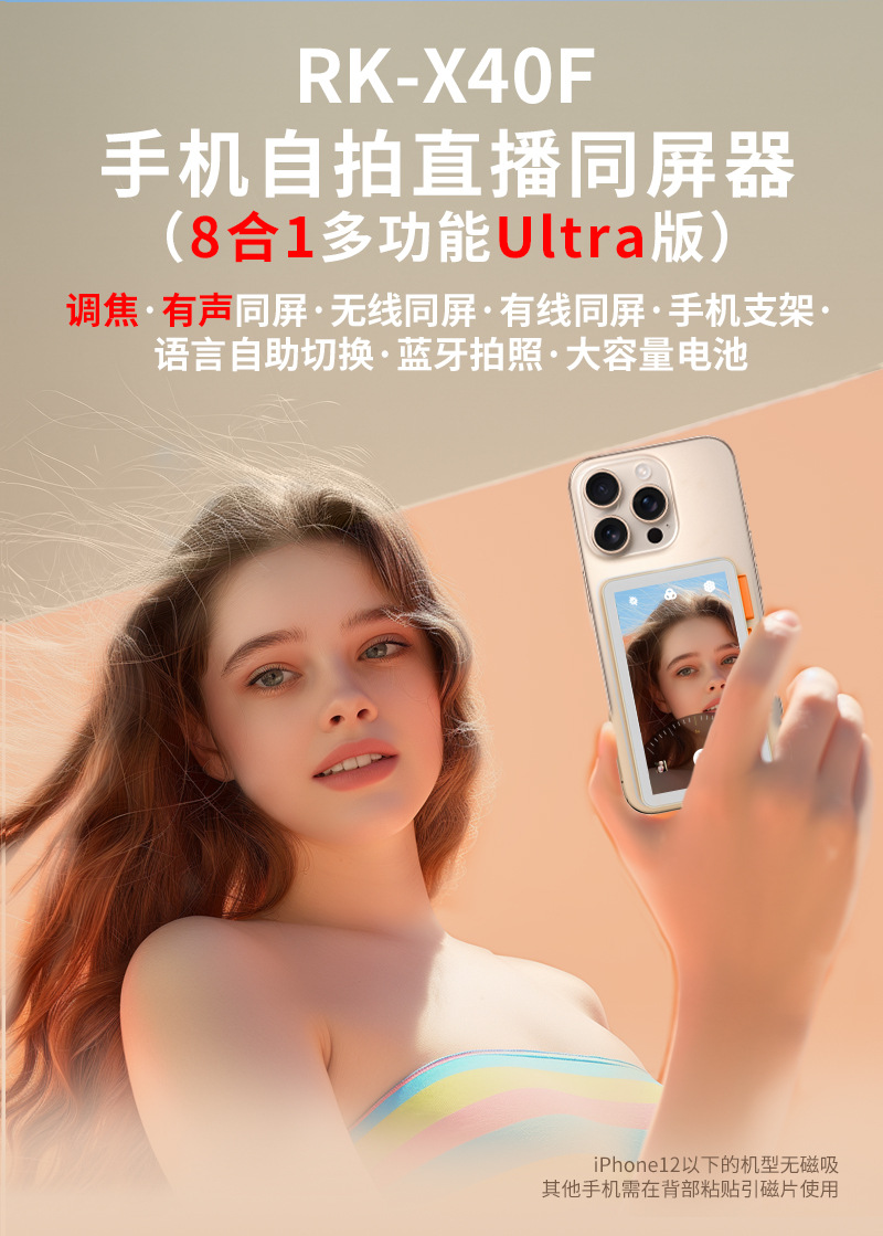 휴대폰 셀카 라이브 방송 오디오 프로젝션 스크린 8-in-1 다기능 울트라 버전에는 초점 조절 기능이 내장되어 있습니다. 데스크탑 스탠드
