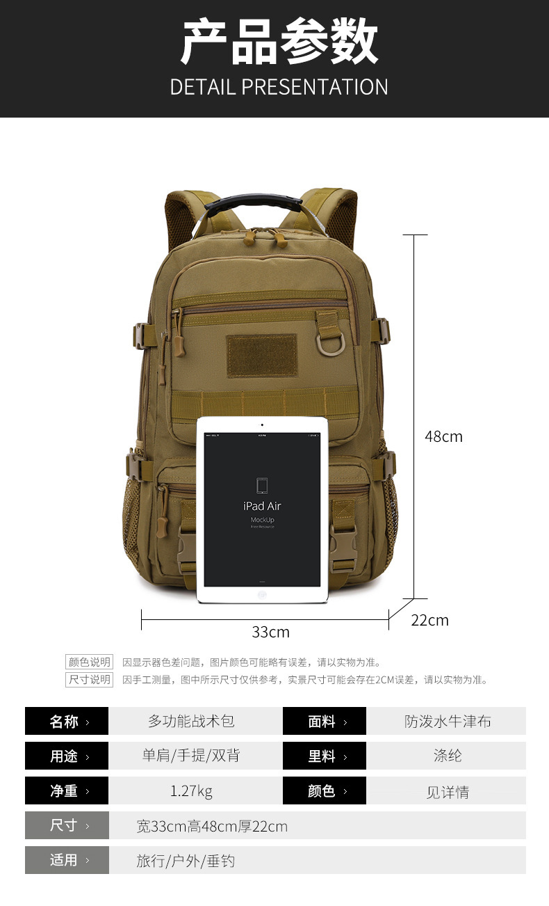 국경 간 대용량 배낭 남자 야외 위장 전술 배낭 여행 등산 가방 대학생 가방 컴퓨터 가방