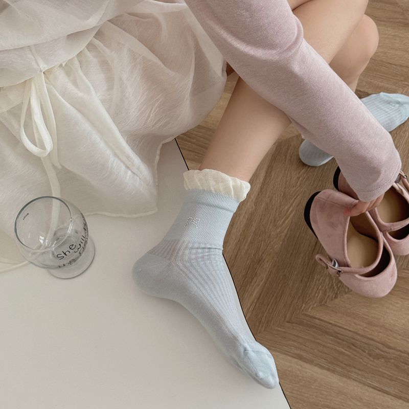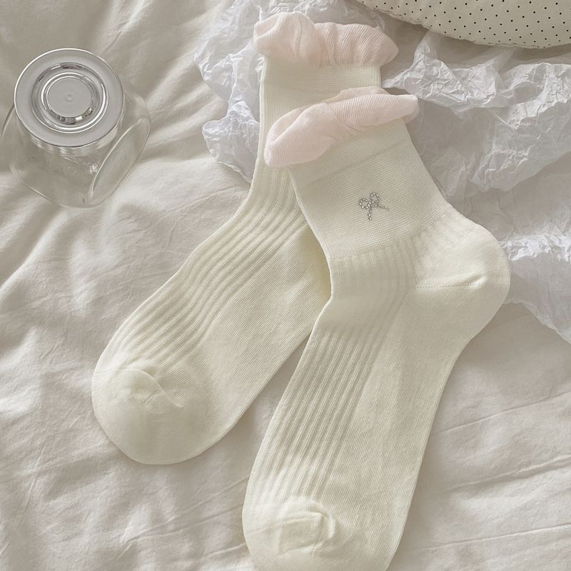 봄과 여름 양말 여성 일본 스타일 달콤한 활 라인석 발레 스타일 얇은 면 여성용 양말 뼈없는 소녀 양말스토어 가기