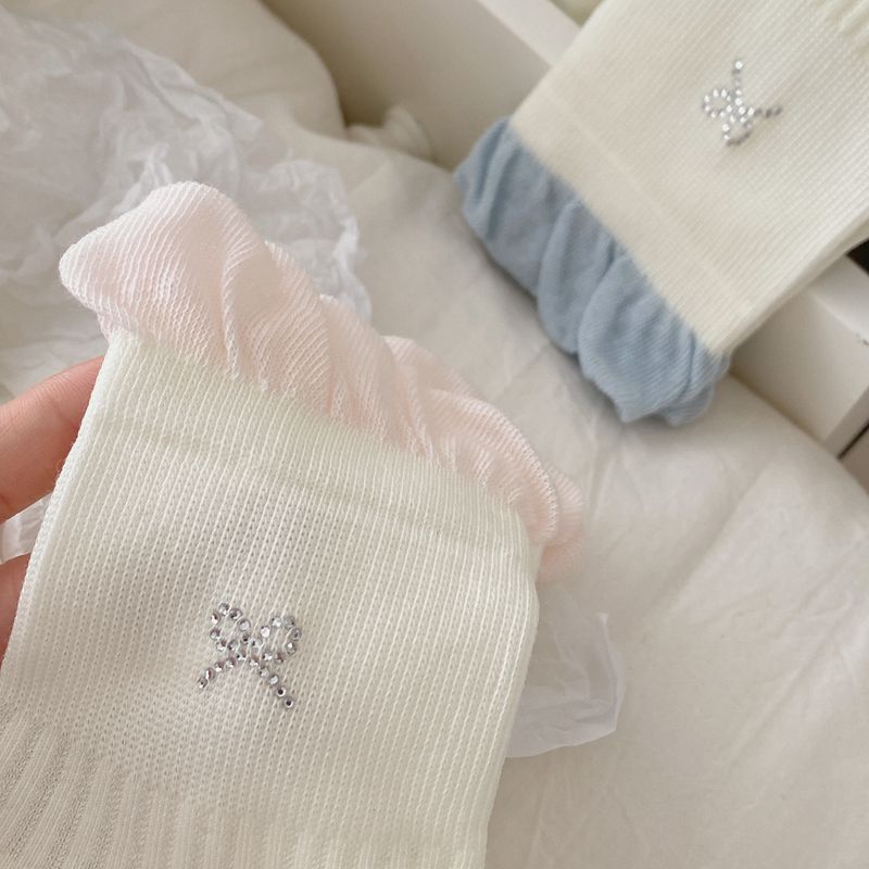 봄과 여름 양말 여성 일본 스타일 달콤한 활 라인석 발레 스타일 얇은 면 여성용 양말 뼈없는 소녀 양말