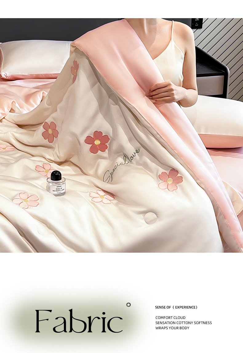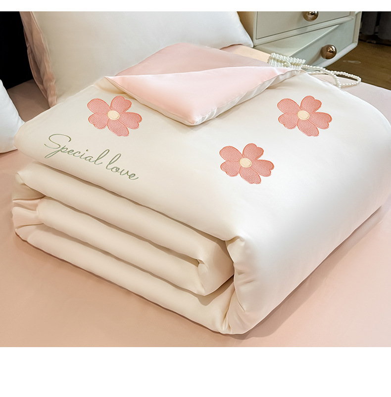 아이스 실크 여름 이불 4 종 세트 싱글 더블 얇은 이불 기계 세탁기 세탁기 여름 이불 자수 쿨 에어컨 퀼트
