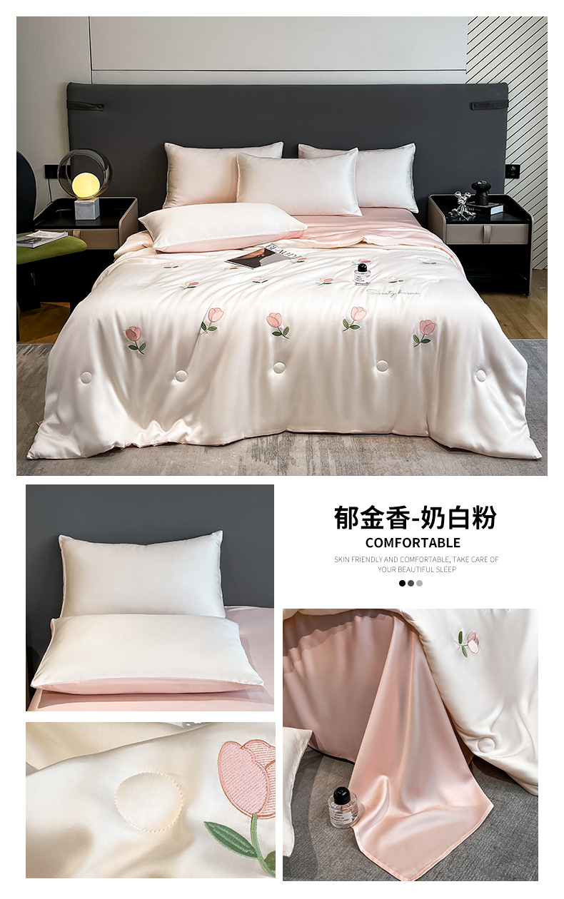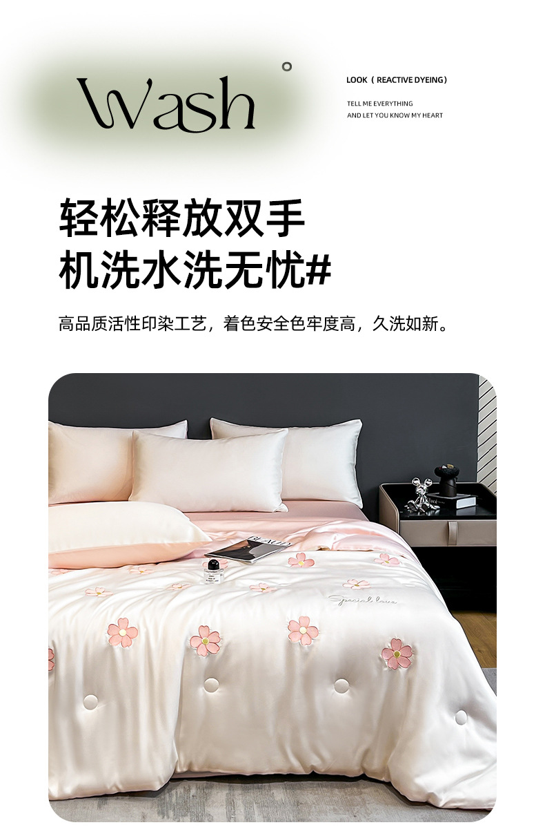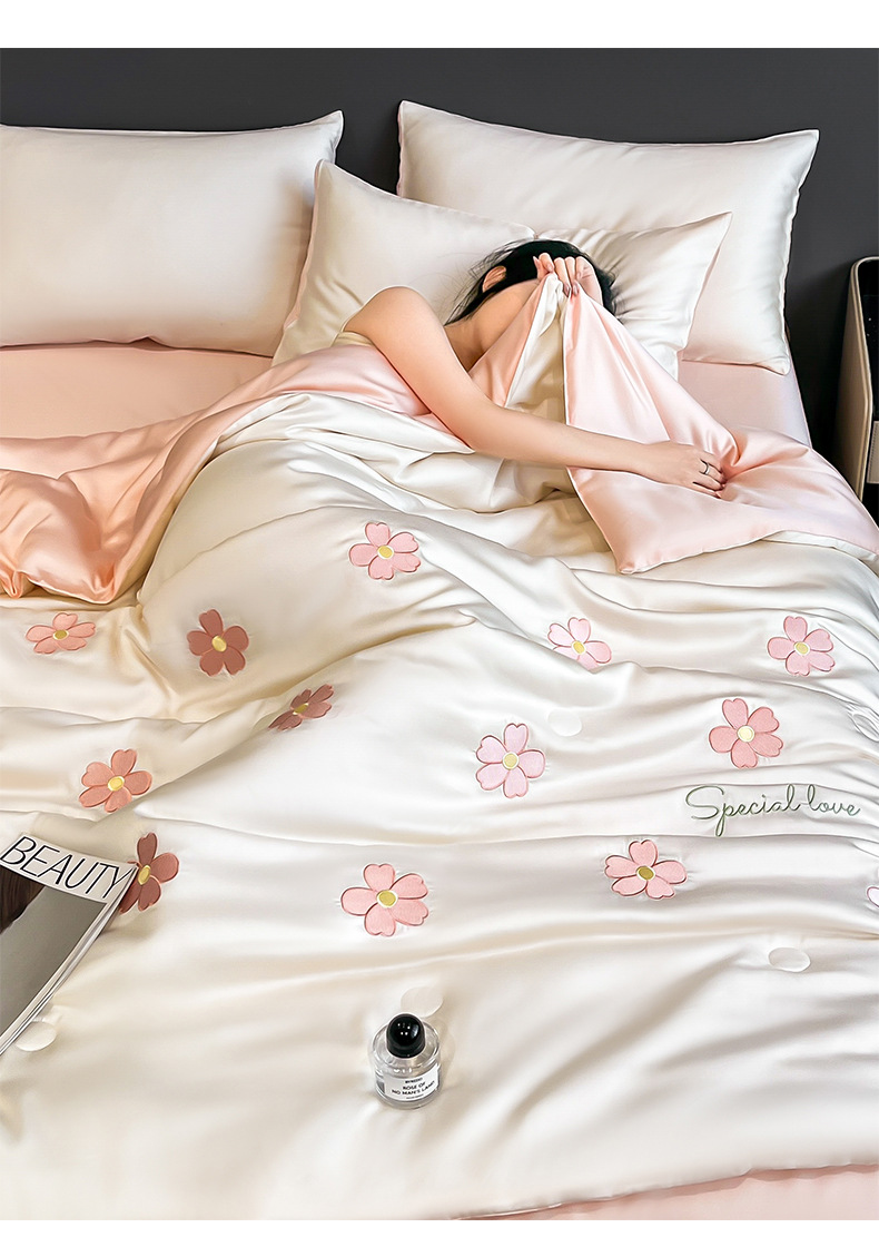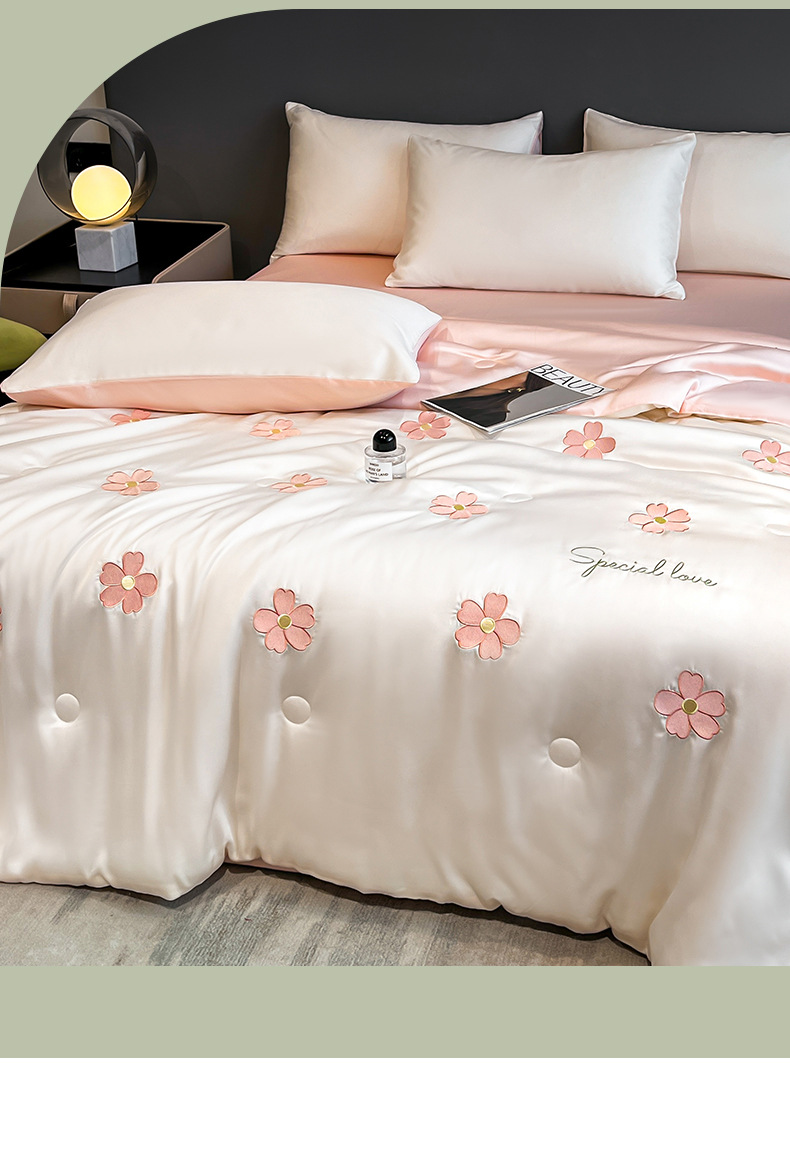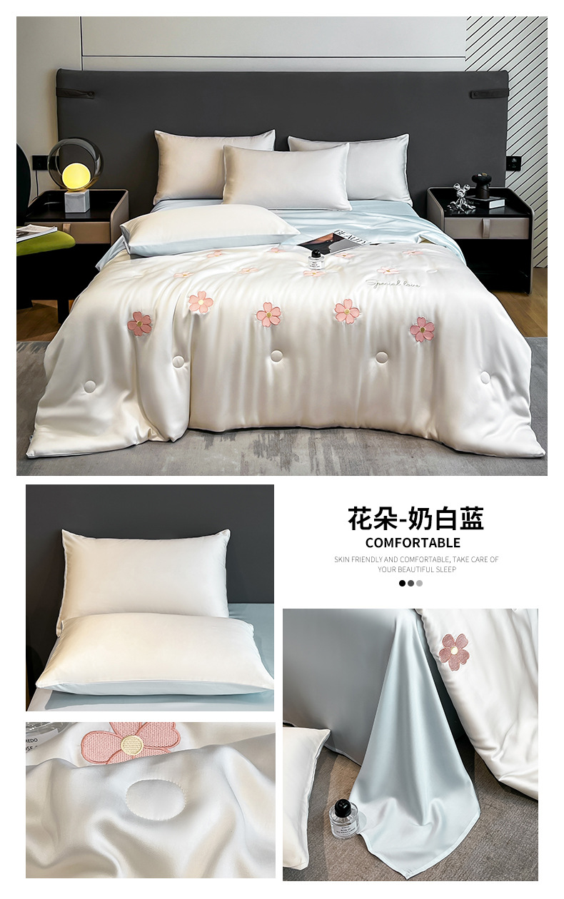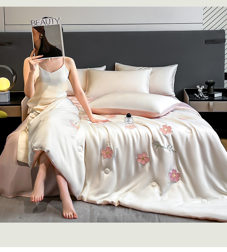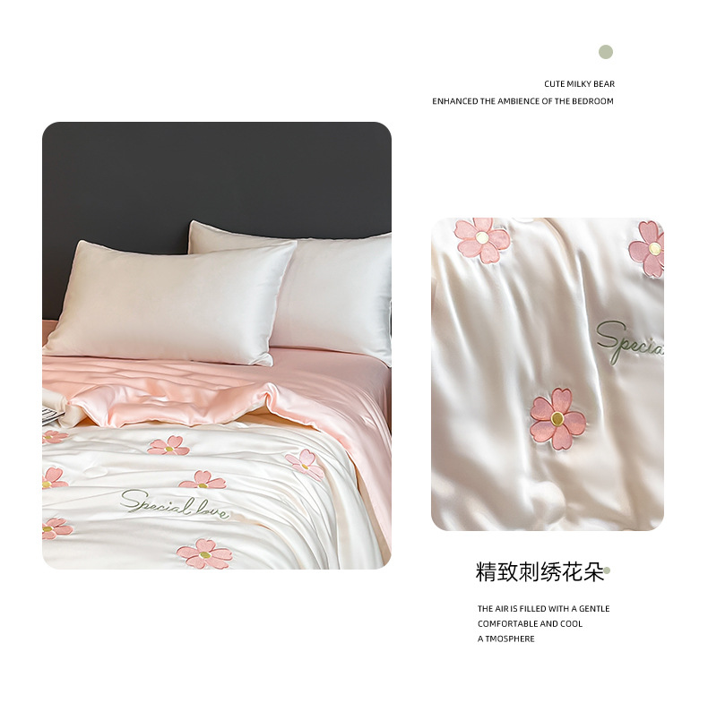 아이스 실크 여름 이불 4 종 세트 싱글 더블 얇은 이불 기계 세탁기 세탁기 여름 이불 자수 쿨 에어컨 퀼트스토어 가기