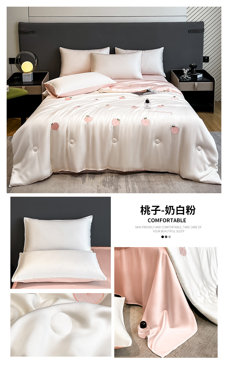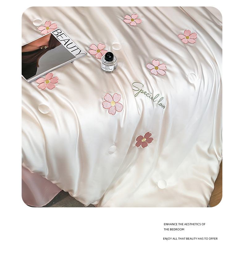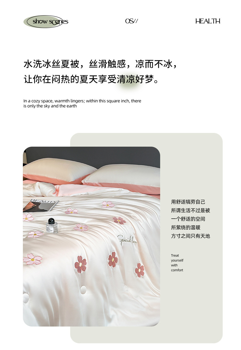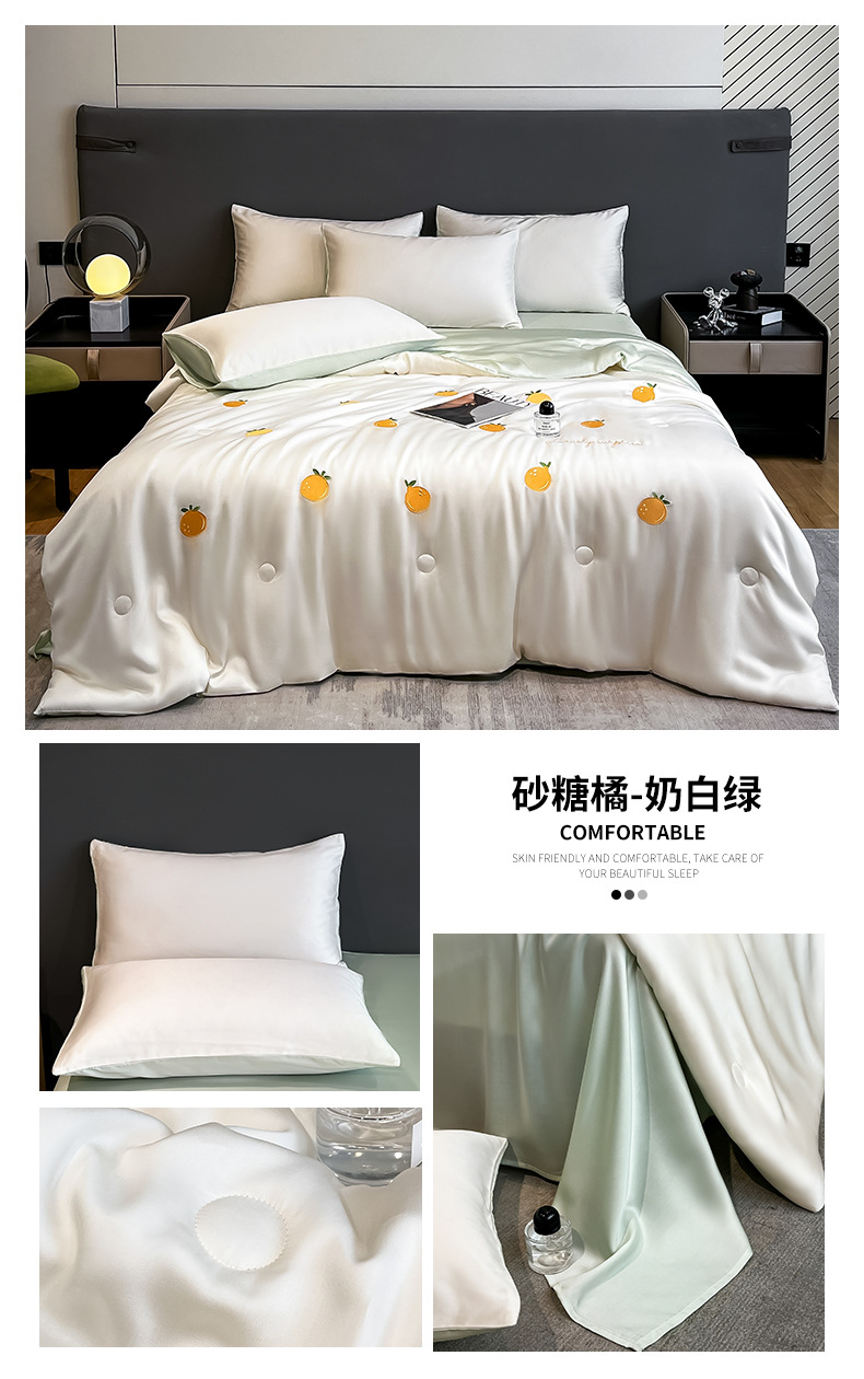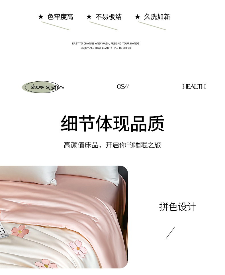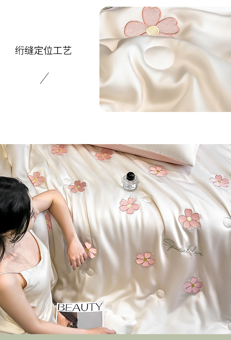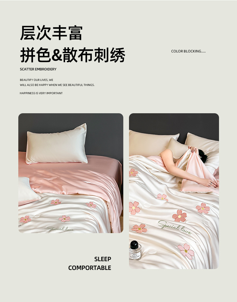 아이스 실크 여름 이불 4 종 세트 싱글 더블 얇은 이불 기계 세탁기 세탁기 여름 이불 자수 쿨 에어컨 퀼트스토어 가기
