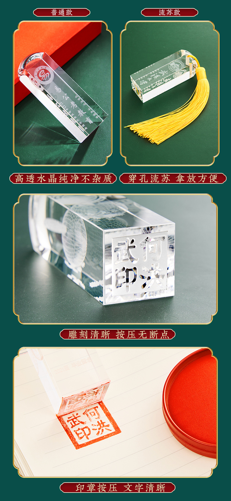 창의적인 크리스탈 스탬프, 새겨진 이름, 학교 로고, 학생 기념품, 졸업 기념품, 동창회 기념품