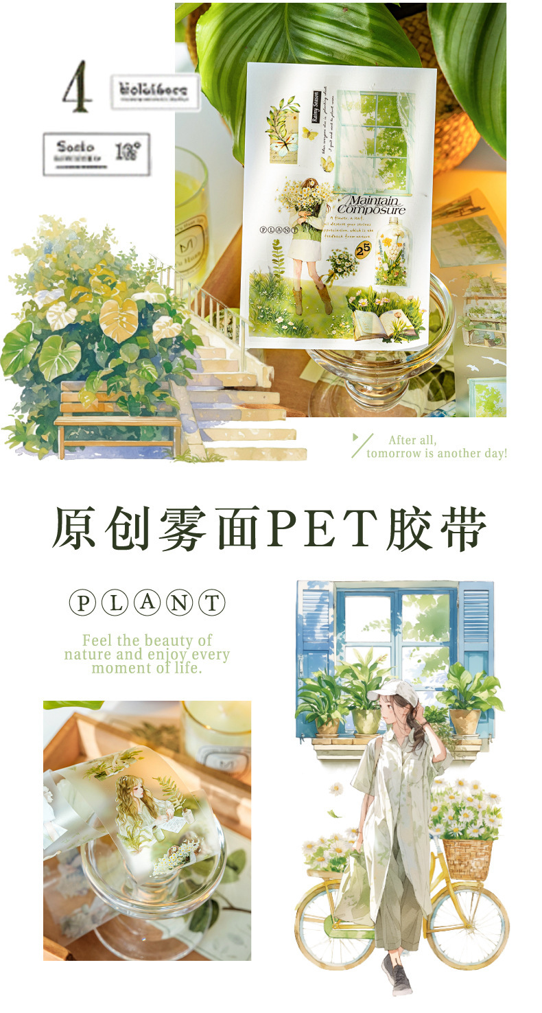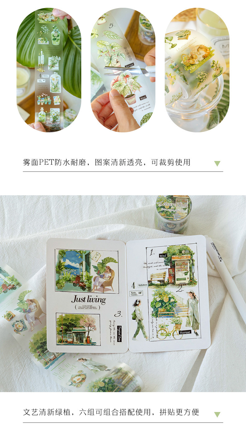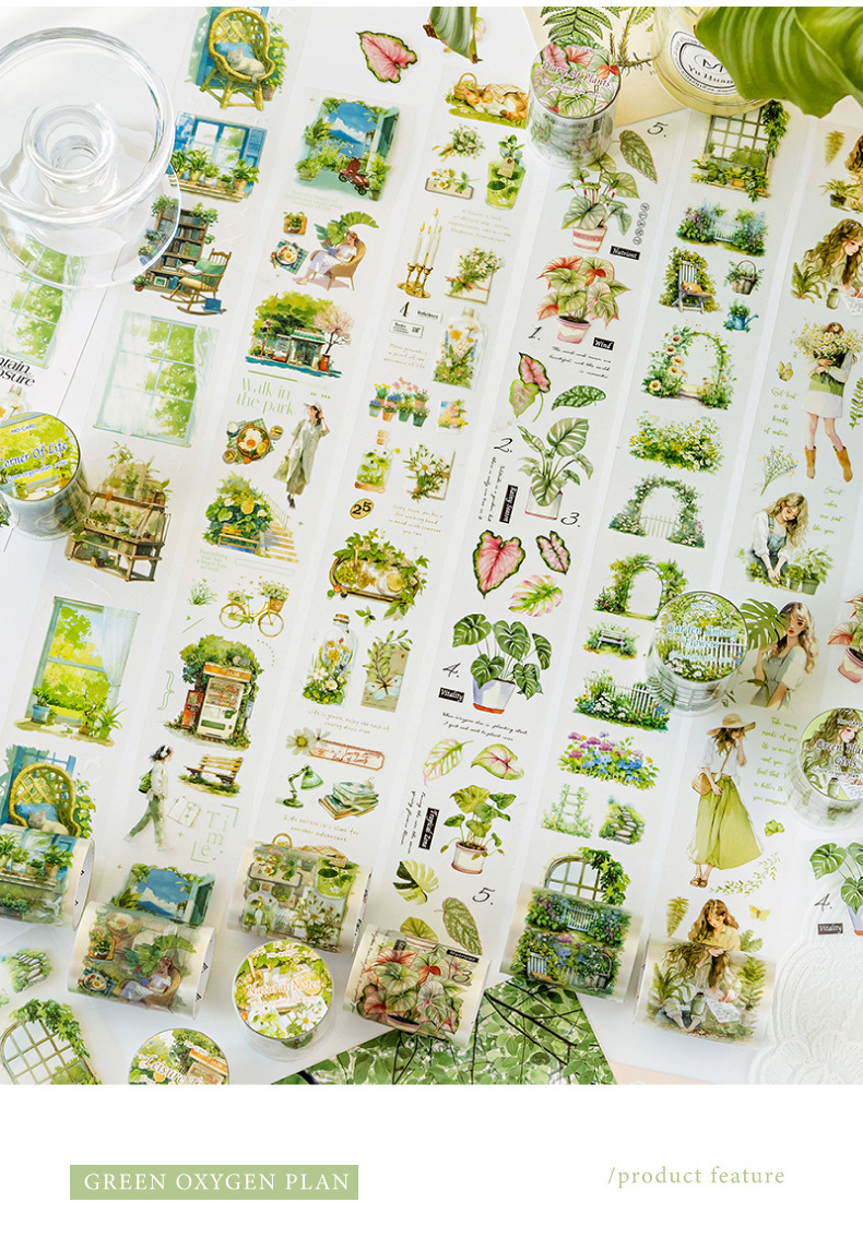 모 모 모 안개 애완 동물 흰색 잉크 테이프 녹색 산소 계획 시리즈 잎 녹색 식물 손 계정 DIY 조경 장식 자료스토어 가기