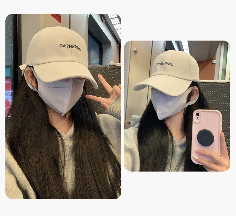 봄여름 남녀공용 챙모자, 머리둘레가 큰 자외선 차단, 곡선챙, 얼굴이 보이는 작은 심플한 레터링 야구모자, 캐주얼모자스토어 가기