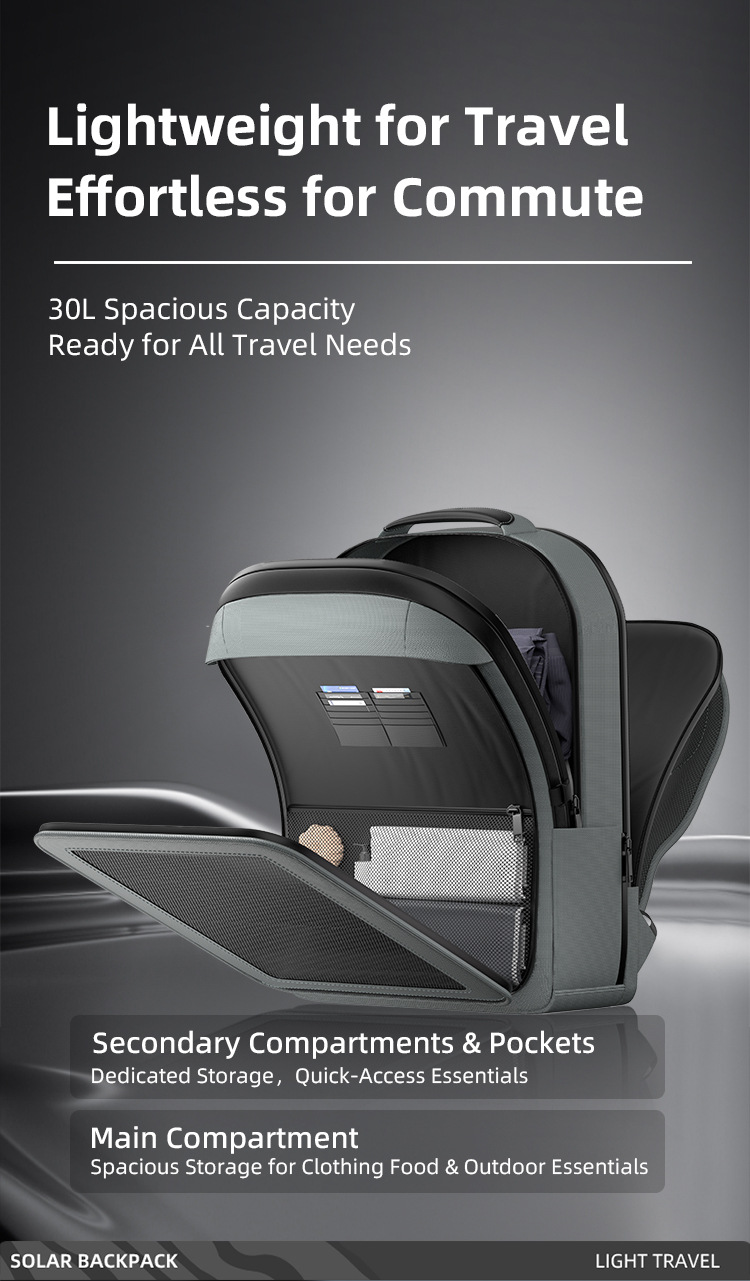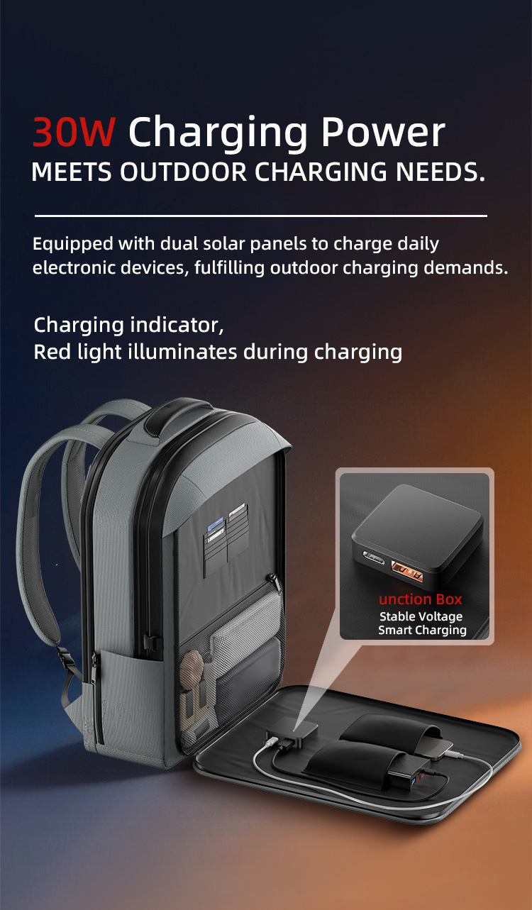 30W 태양광 배낭 35L 대용량 여행 등산 가방 휴대폰 충전