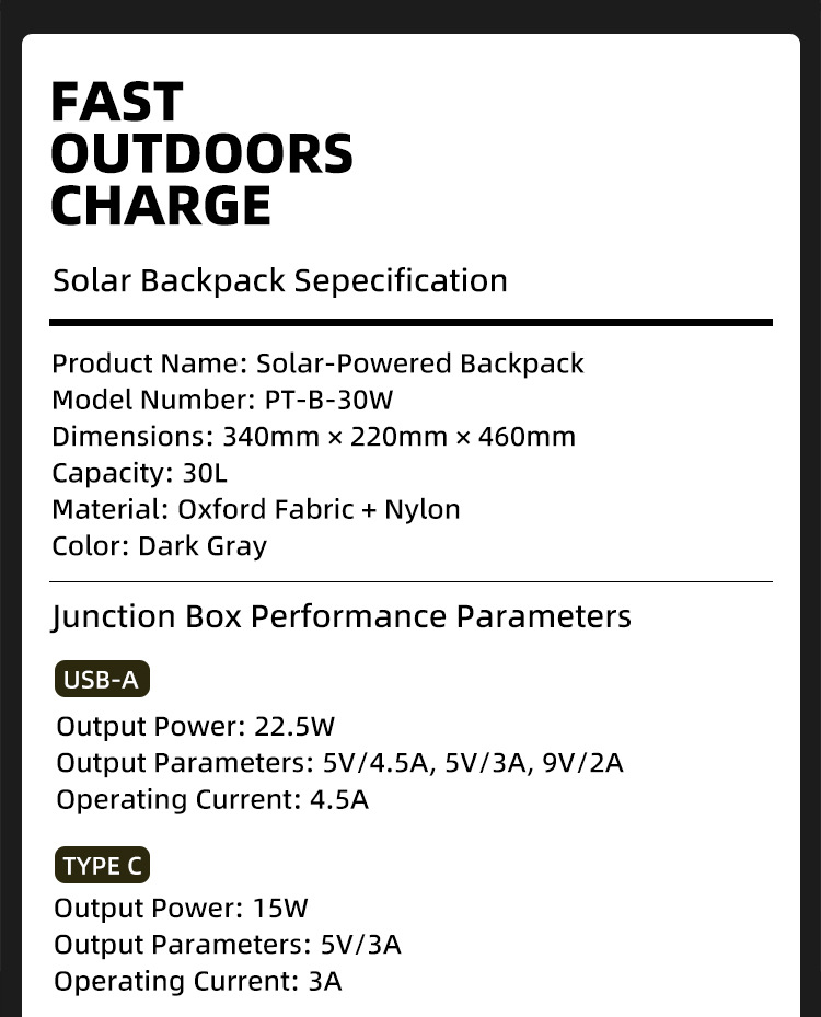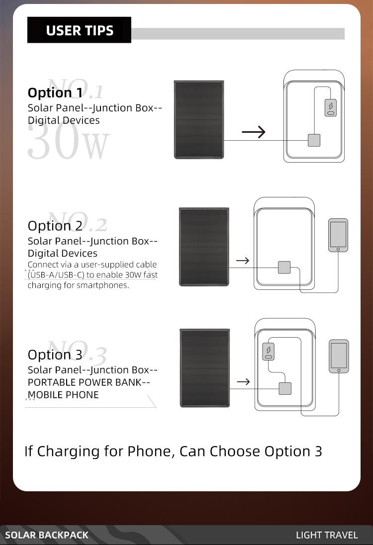 30W 태양광 배낭 35L 대용량 여행 등산 가방 휴대폰 충전스토어 가기