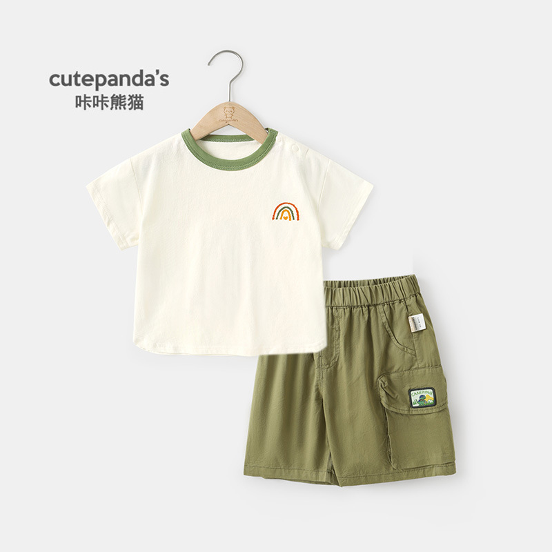 카카 팬더 소년 반팔 T-반바지 투피스 어린이 여름 착용 여자 여름 캐주얼 세트 아기 아동복스토어 가기