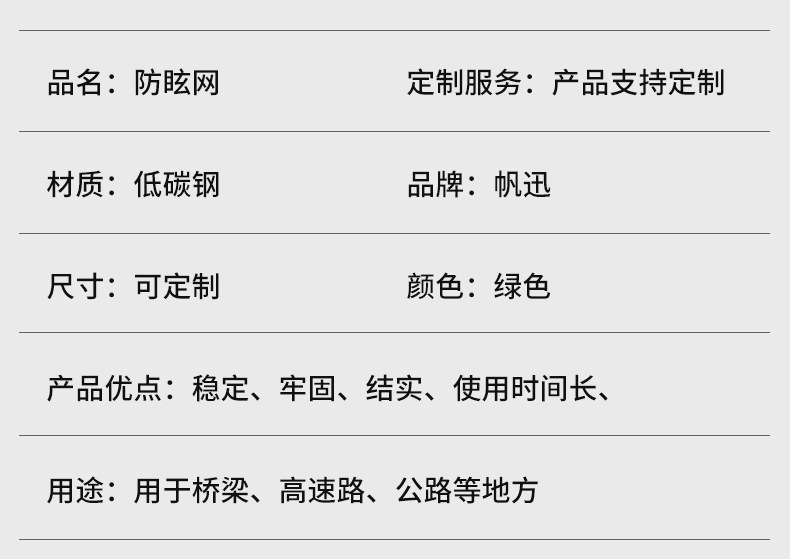 고속도로 눈부심 방지망, 마름모 구멍 프레임망, 고고도 교량 추락 방지망, 보호망, 고속철도 기차 도로 울타리망