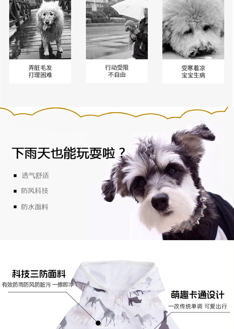 반사 스트립이있는 소스 공장 후드 개 비옷 만화 인쇄 애완 동물 방수 옷 테디 비숑 비옷