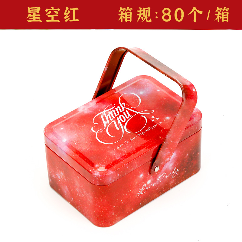 • 별이 빛나는 하늘 빨간색 휴대용 철 상자