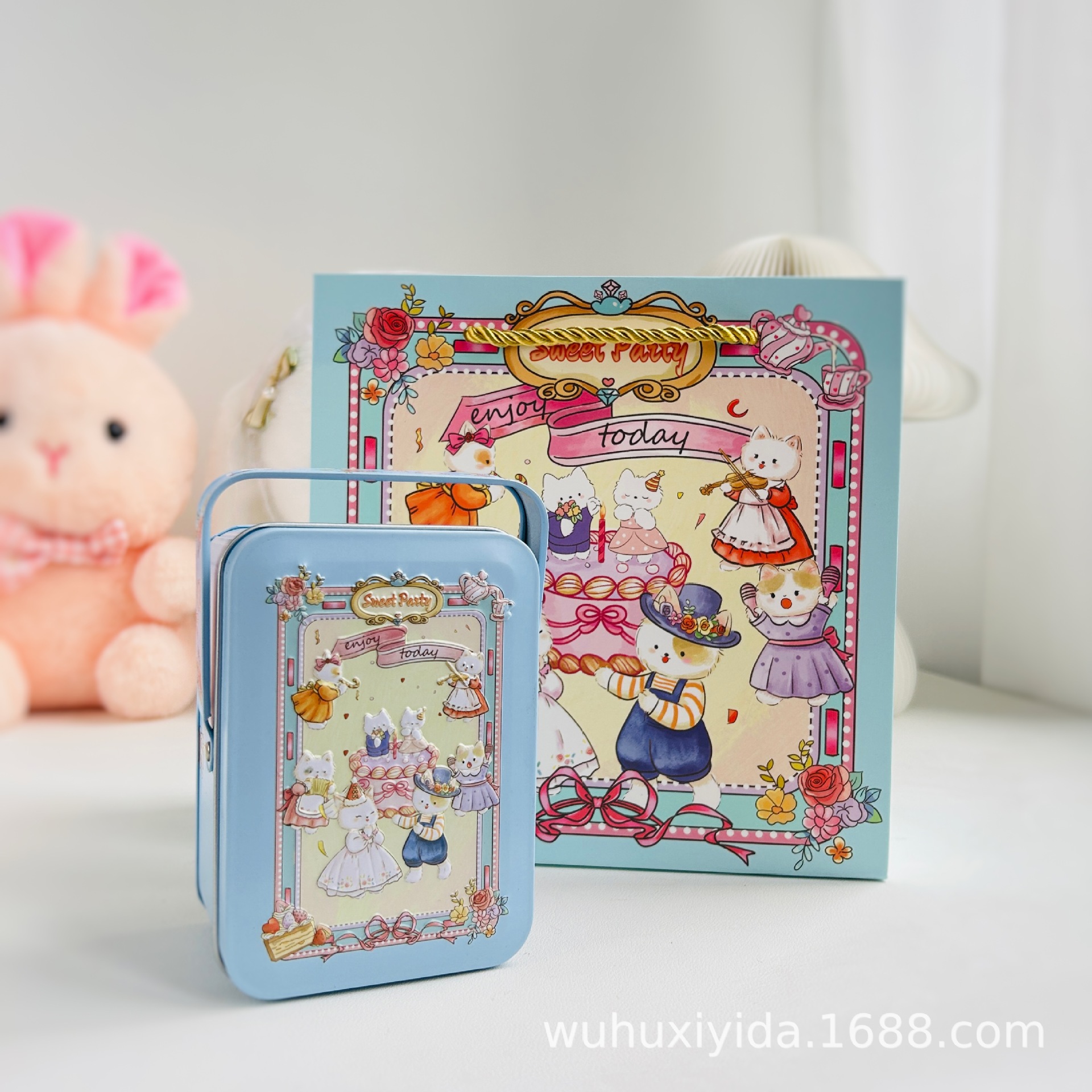 • 별이 빛나는 하늘색 휴대용 철 상자