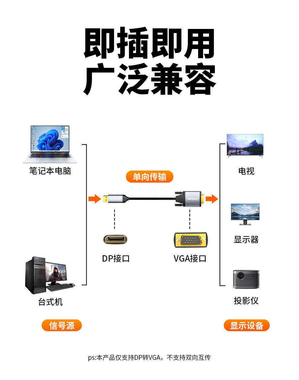 Youlian dp-vga 케이블 vja 변환기 디스플레이 포트 인터페이스 컴퓨터 그래픽 카드 모니터 vda 어댑터스토어 가기
