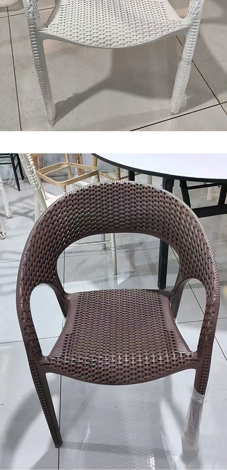 손으로 짠 등나무 의자 홈 거실 식당 의자 홈스테이 플라스틱 등나무 의자 도매 야외 잔디 레저 의자