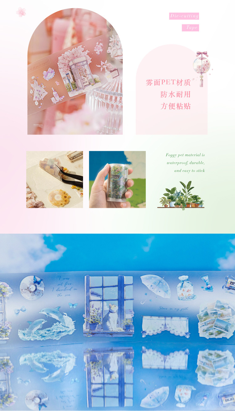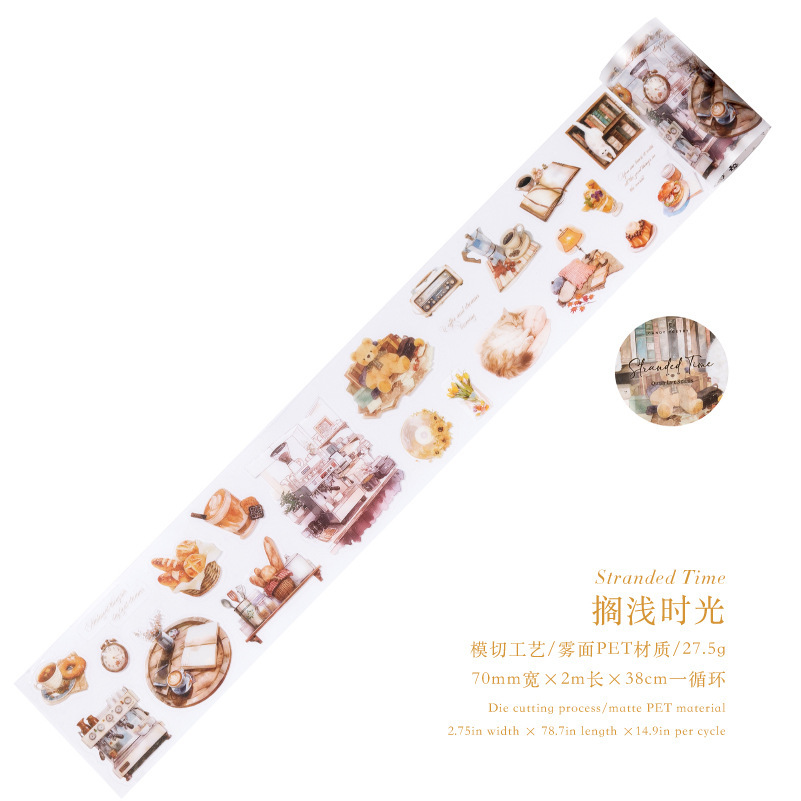 설탕시 PET 다이 커팅 테이프 조용한 생활 시리즈 일상 생활 테마 손 계정 DIY 장면 조경 콜라주