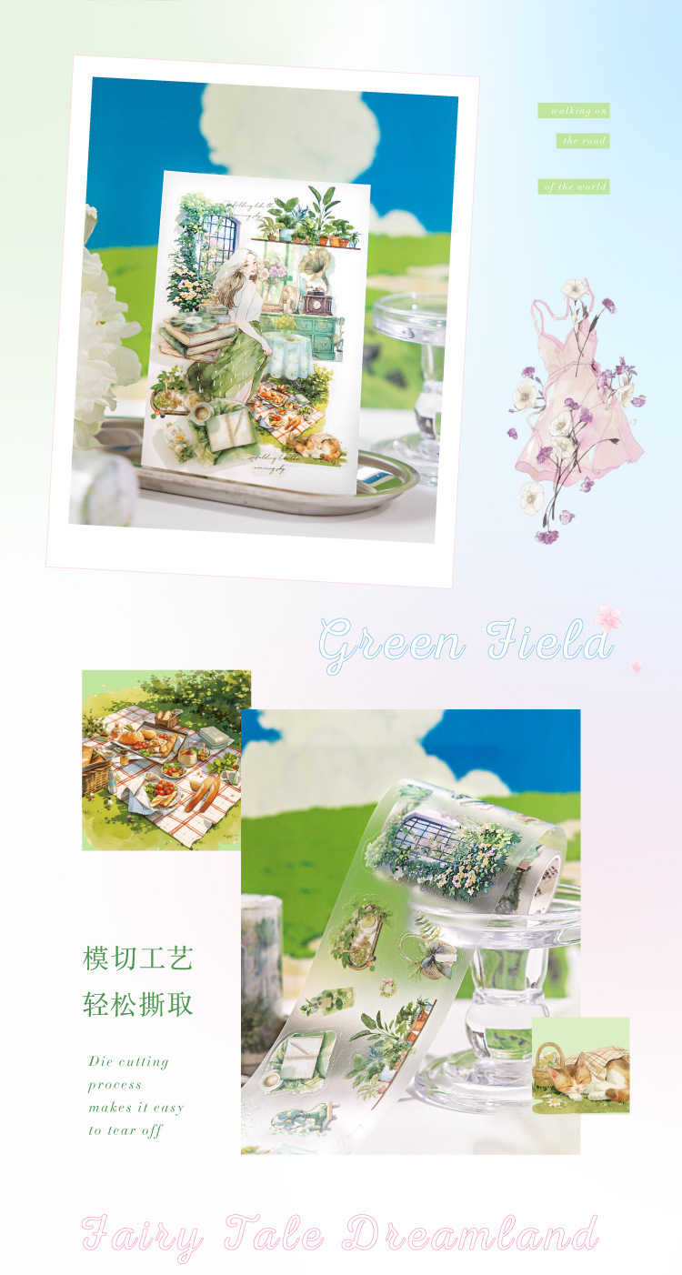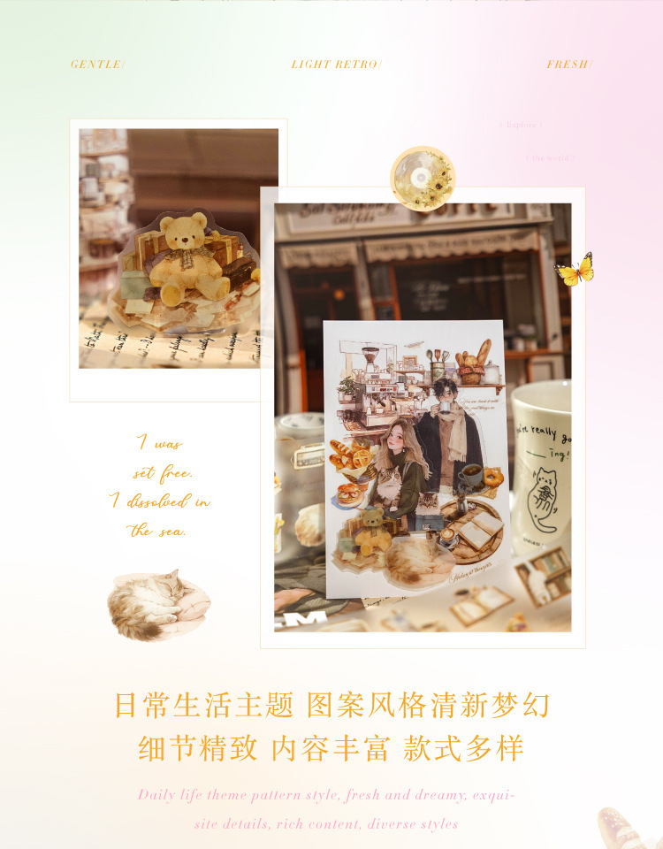 설탕시 PET 다이 커팅 테이프 조용한 생활 시리즈 일상 생활 테마 손 계정 DIY 장면 조경 콜라주스토어 가기