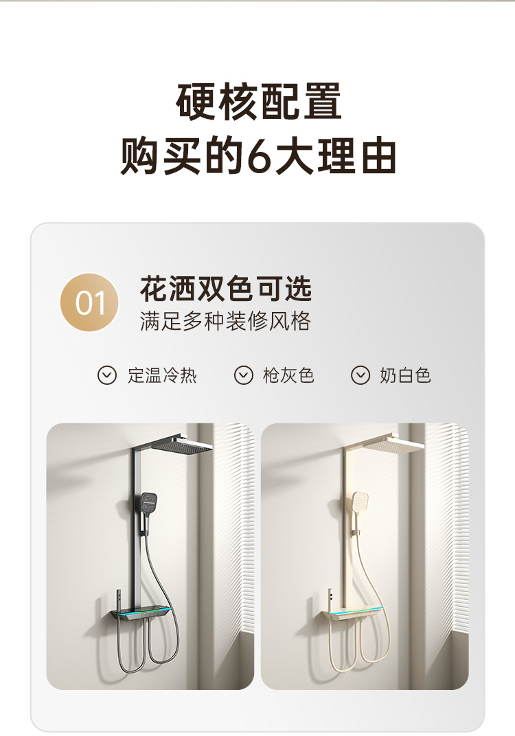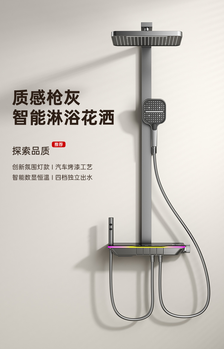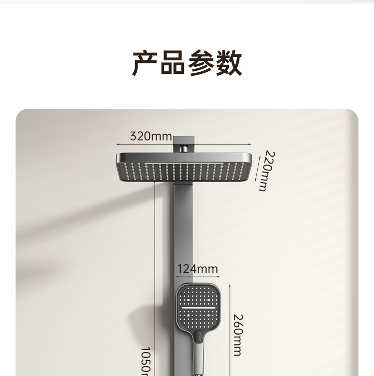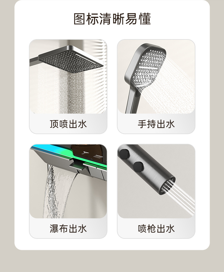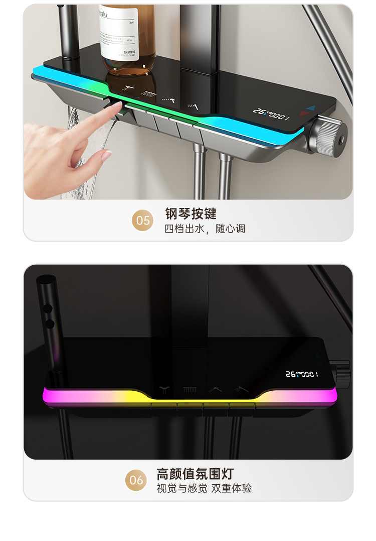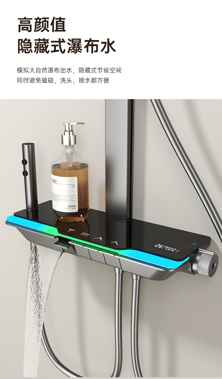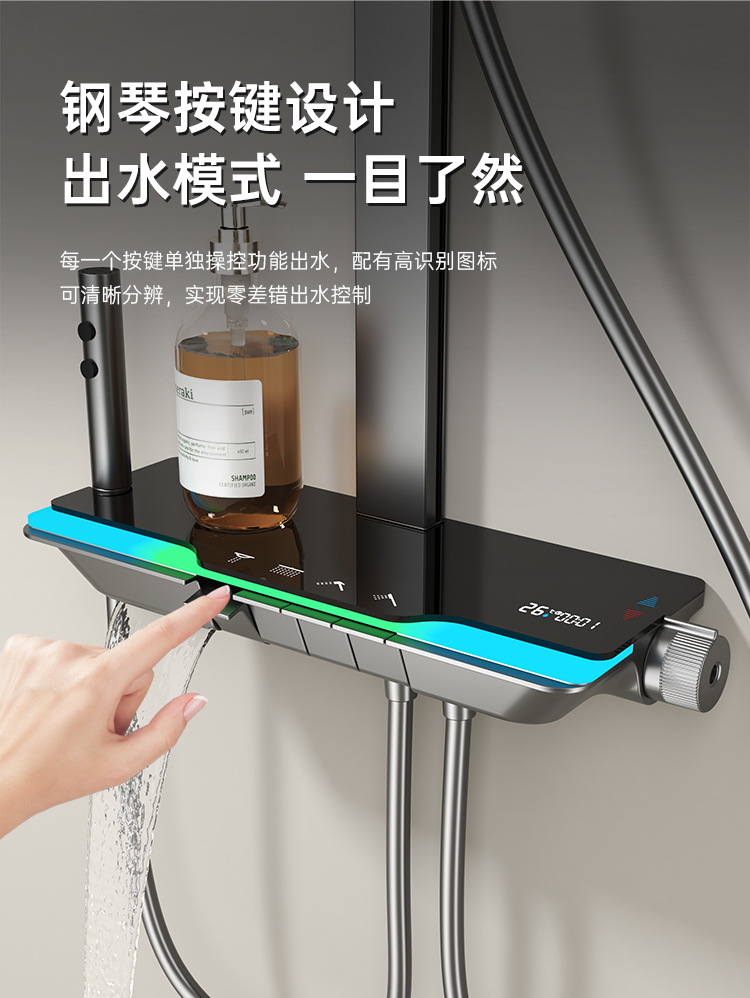 샤워기 세트 욕실용 온도조절 유리면 피아노 버튼 샤워기 고압 분사 노즐 스마트 온도조절