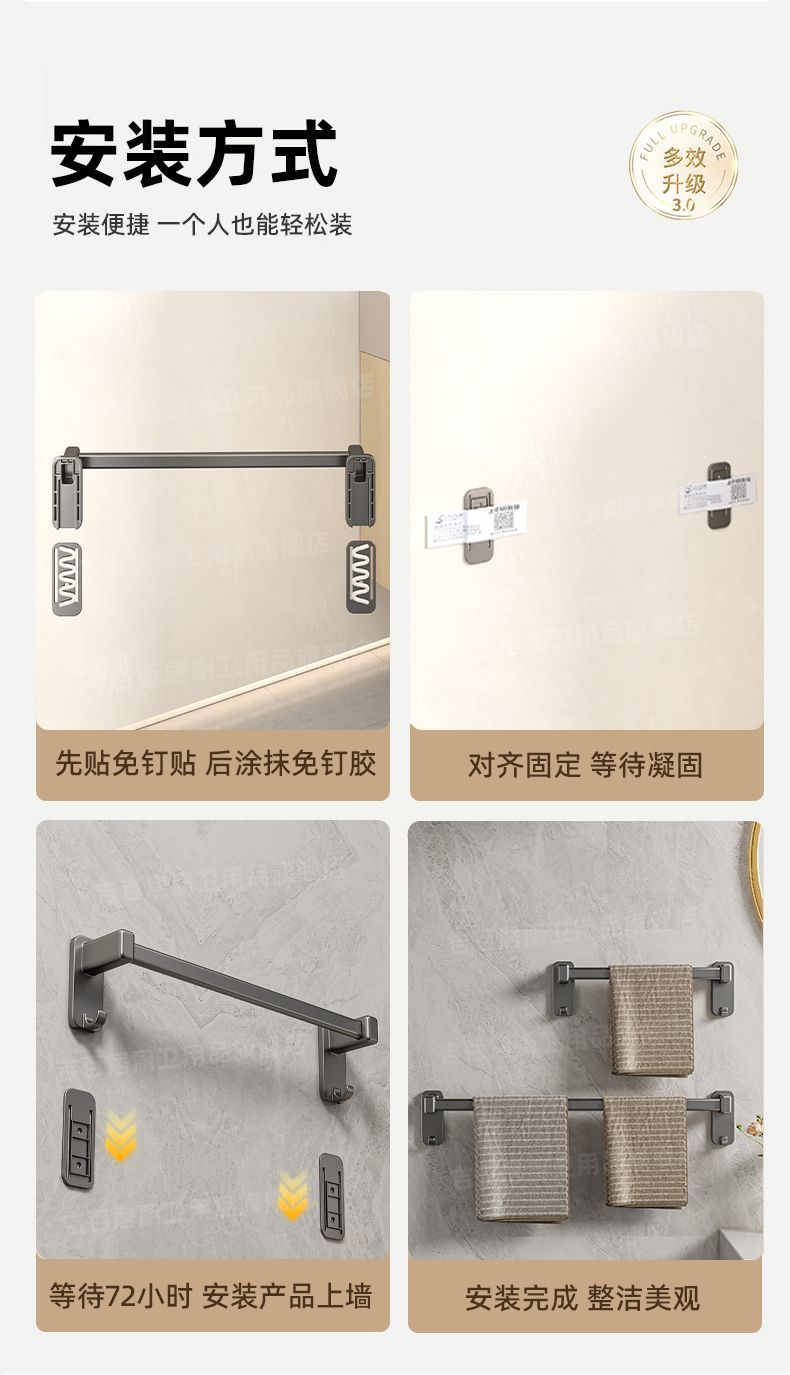 • 건그레이 타월바 [70CM] 펀칭 없이 탈부착 및 세탁 가능