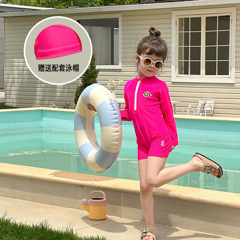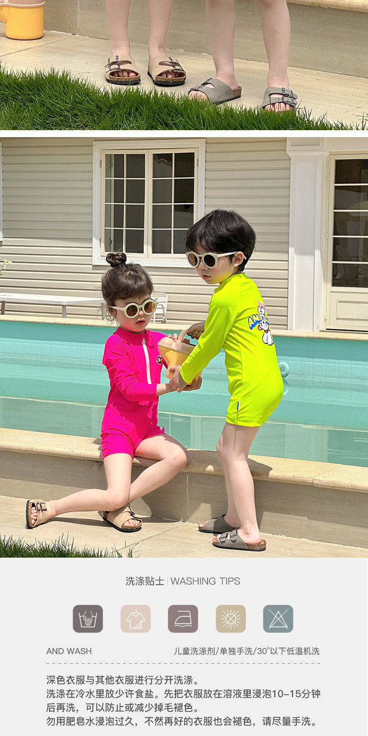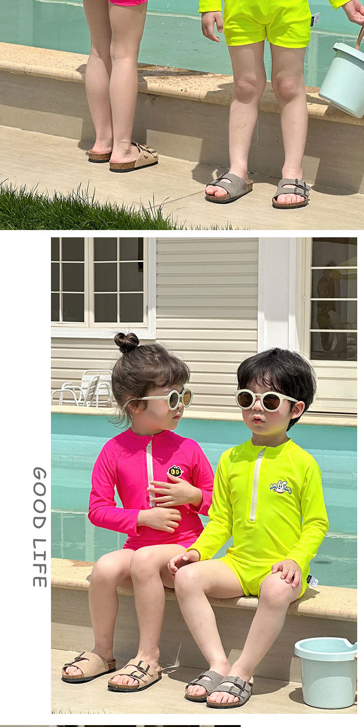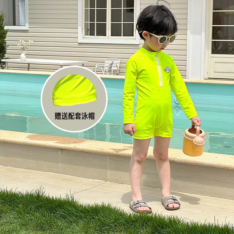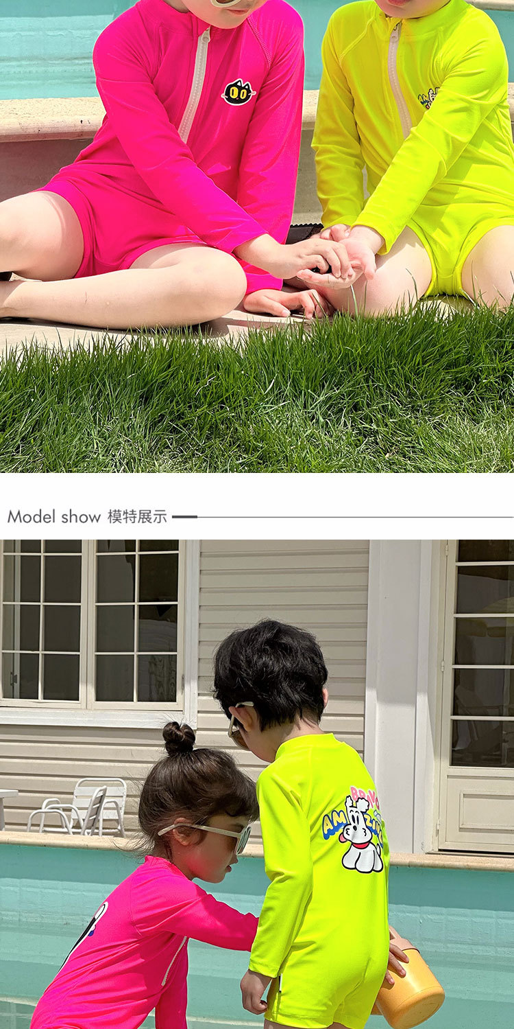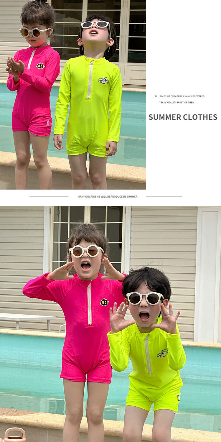 소년과 소녀 수영복 도파민 형광 색상 해변 긴팔 원피스 어린이 태양 보호 속건 어린이 수영복