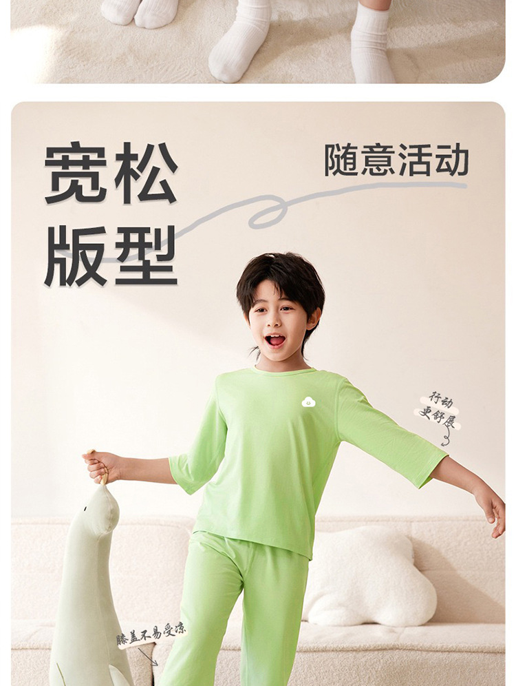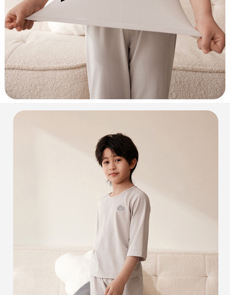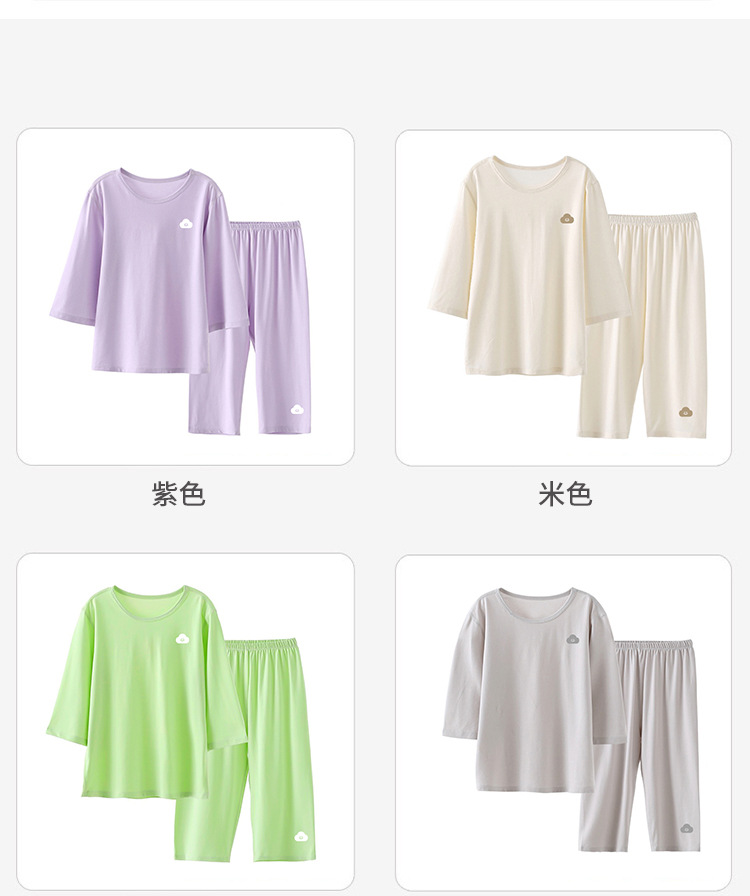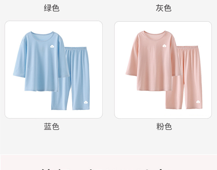 맞춤형 아동 잠옷, 남아용 여름 얇은 남아 및 여아 가정복, 아동용 에어컨 의류, 큰 아동용 7부 소매 양복스토어 가기