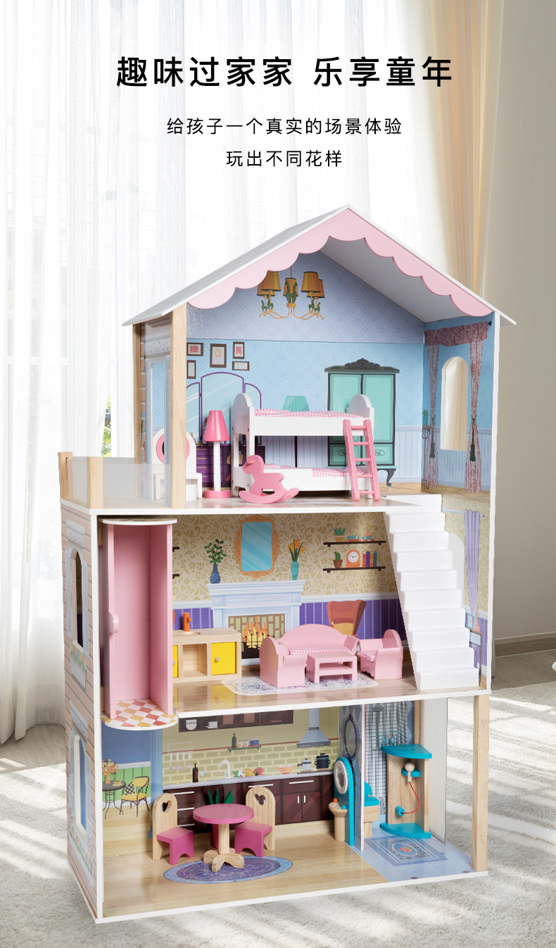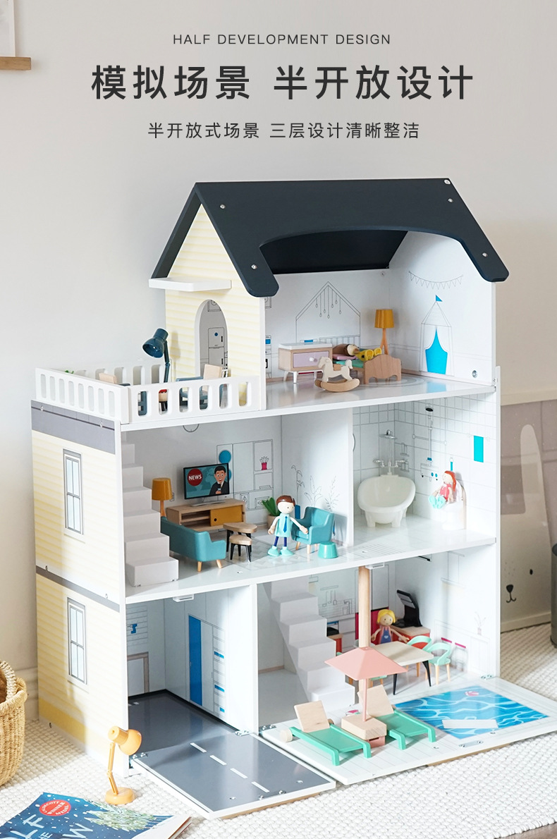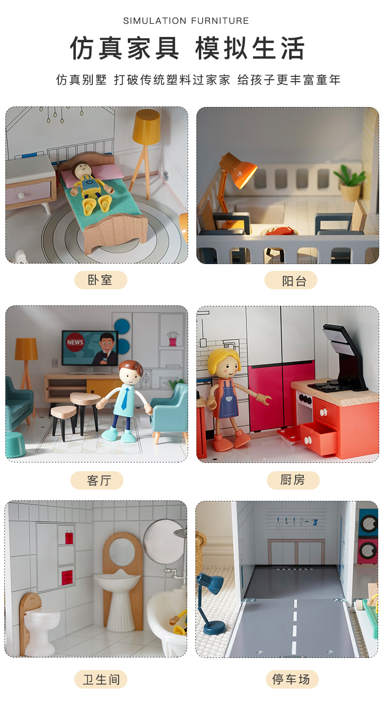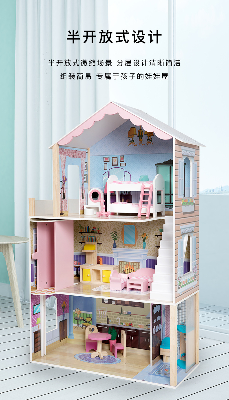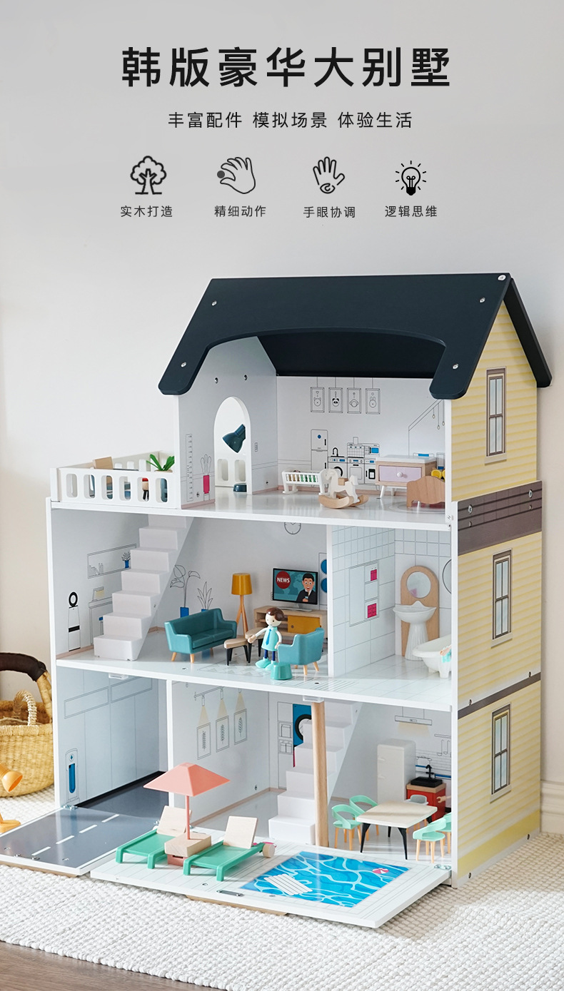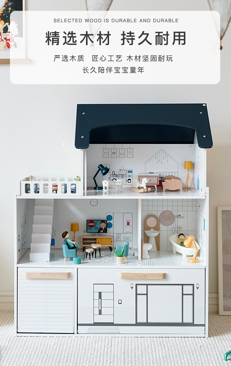 어린이 나무 놀이 집 인형 집 시뮬레이션 장난감 미니 가구 조립 빌라 소년과 소녀 교육 장난감스토어 가기