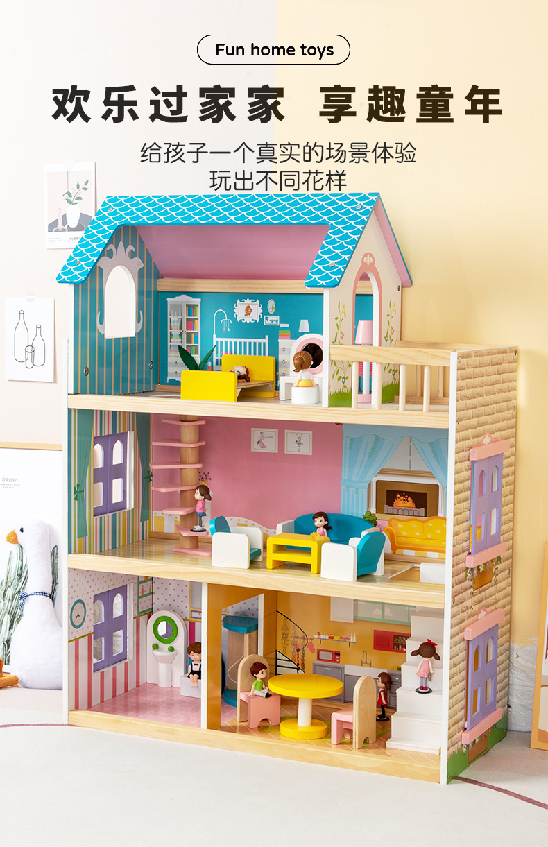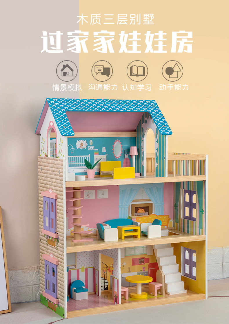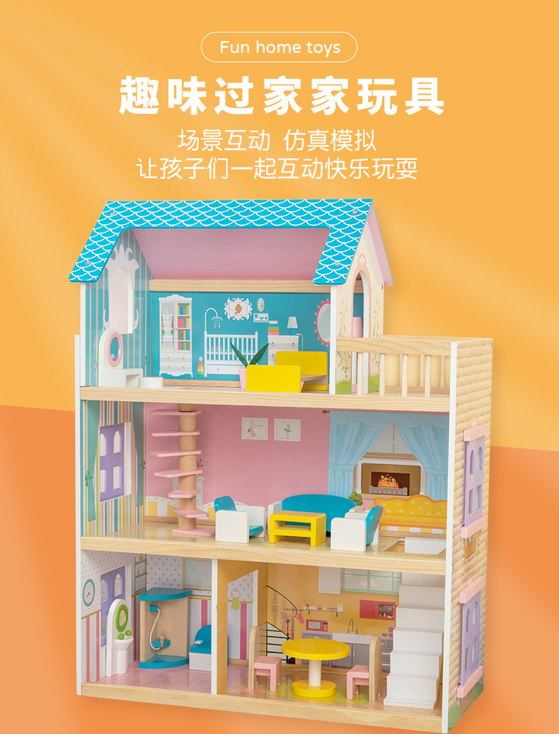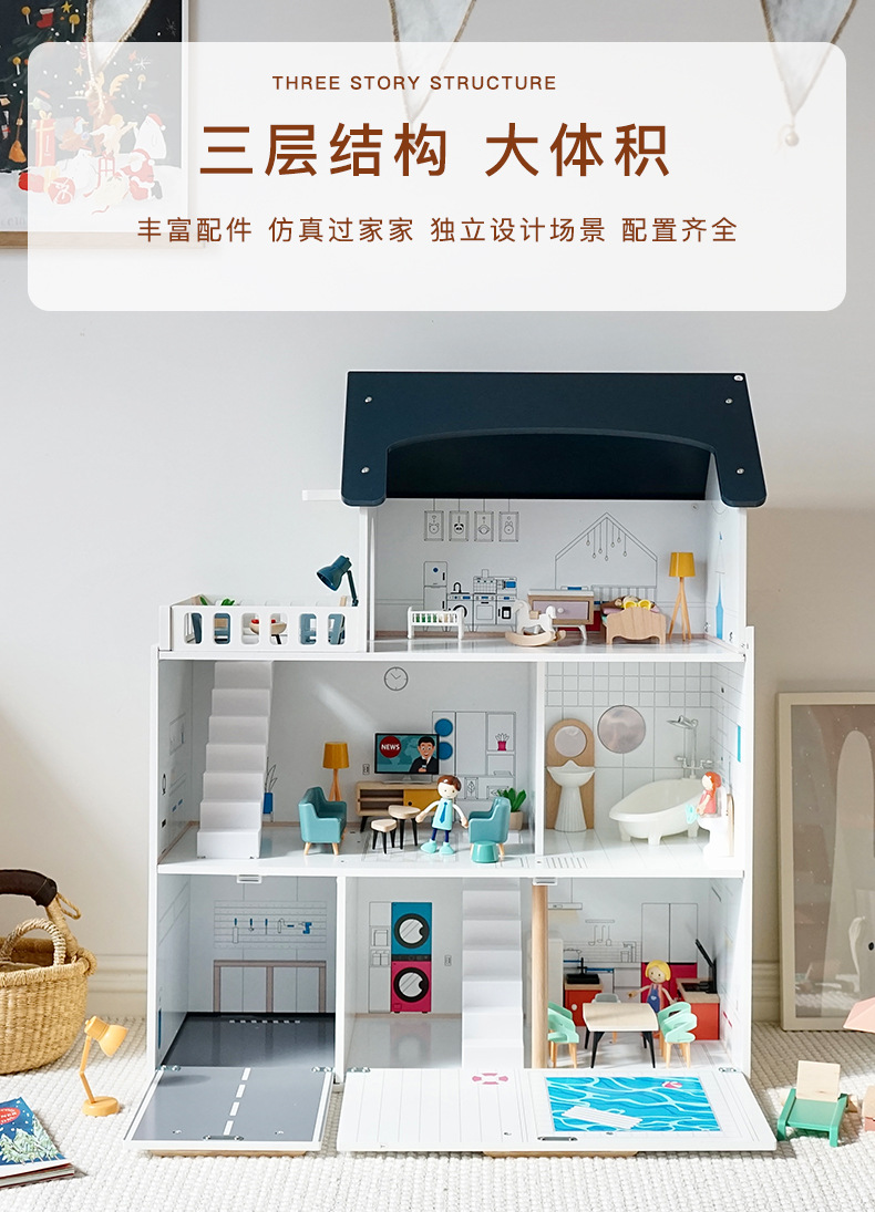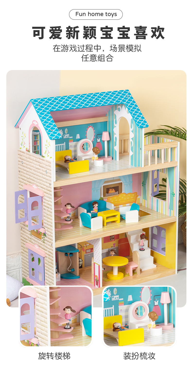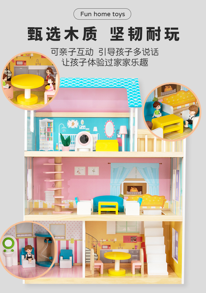 어린이 나무 놀이 집 인형 집 시뮬레이션 장난감 미니 가구 조립 빌라 소년과 소녀 교육 장난감스토어 가기
