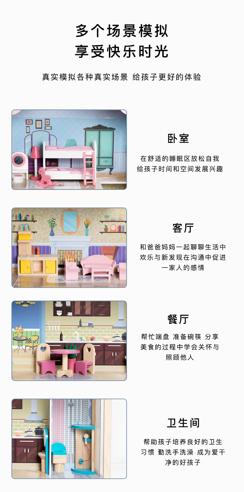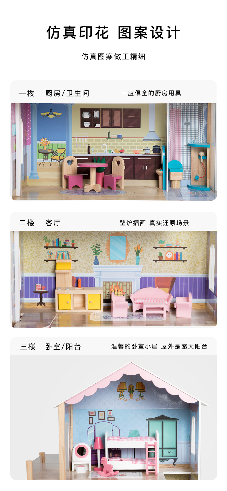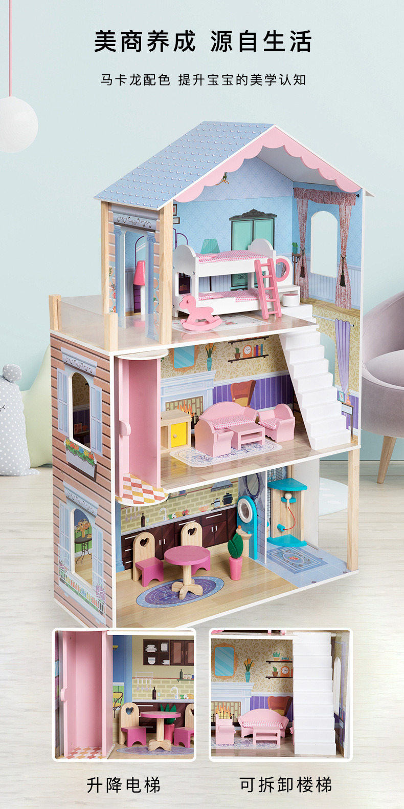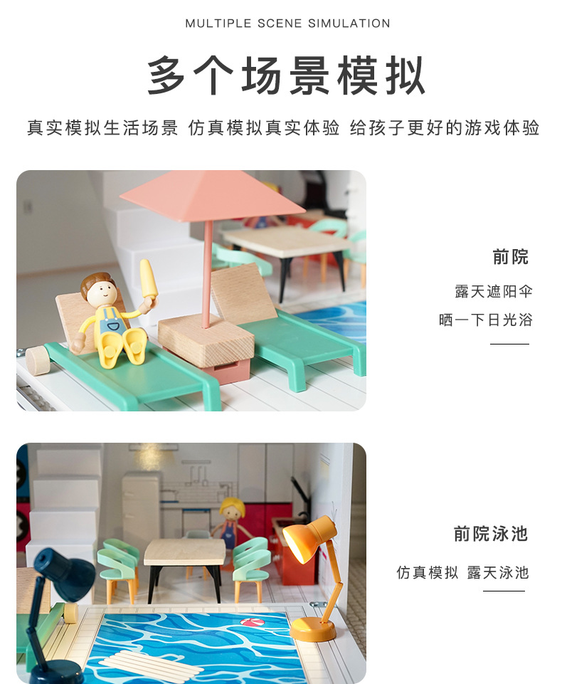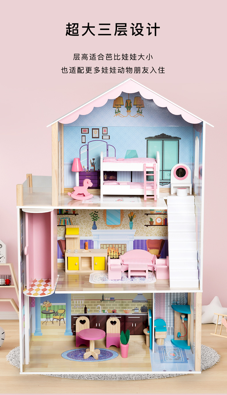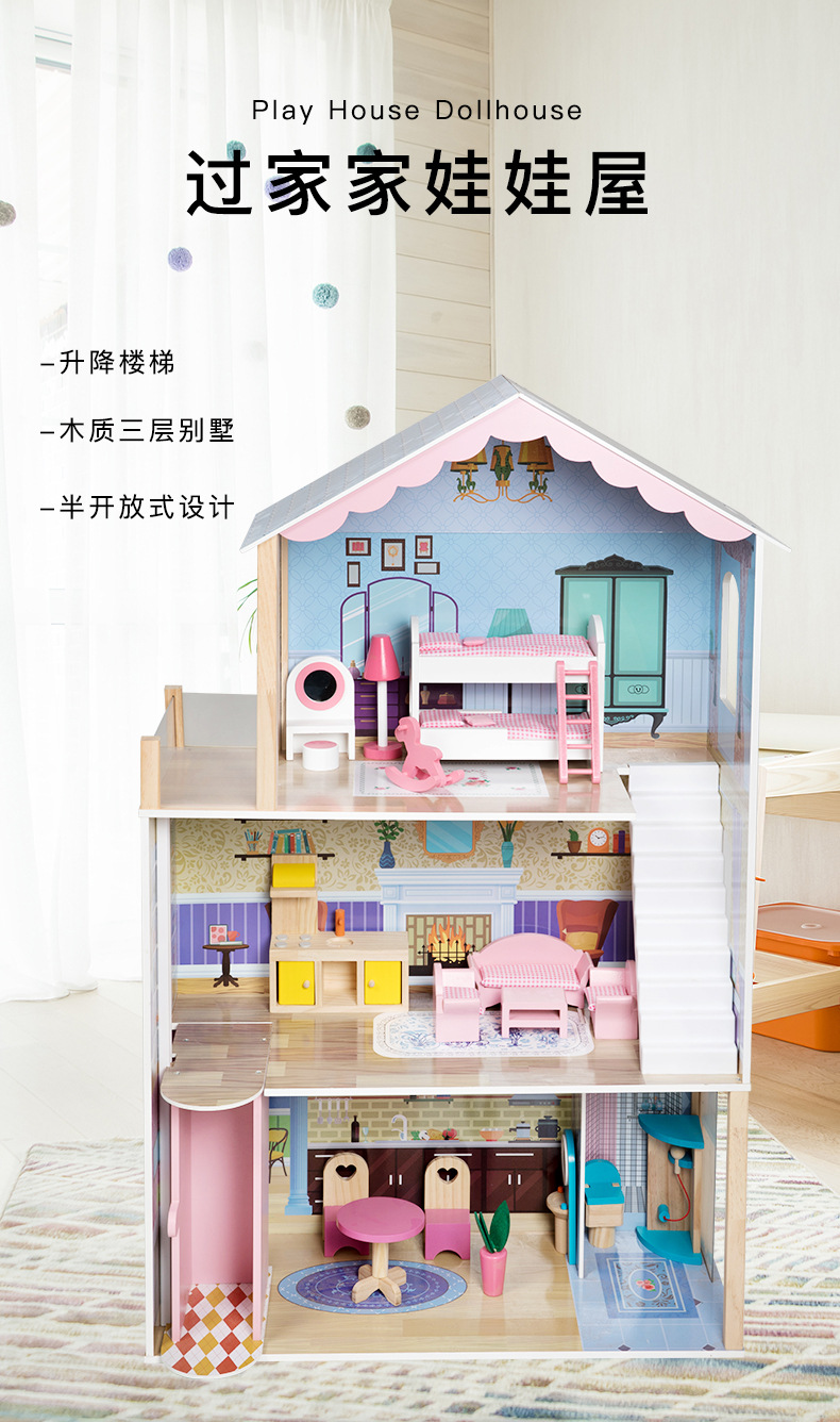 어린이 나무 놀이 집 인형 집 시뮬레이션 장난감 미니 가구 조립 빌라 소년과 소녀 교육 장난감스토어 가기