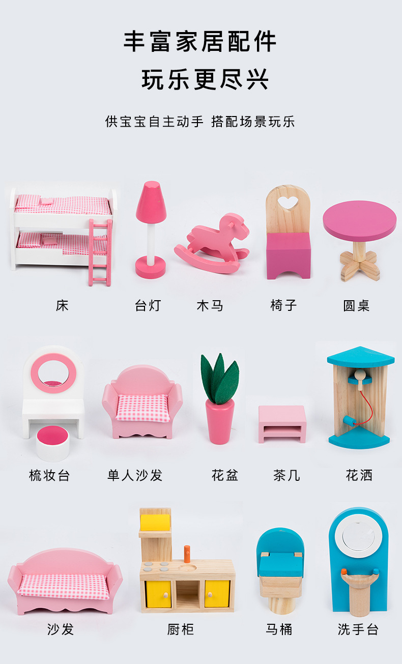 어린이 나무 놀이 집 인형 집 시뮬레이션 장난감 미니 가구 조립 빌라 소년과 소녀 교육 장난감