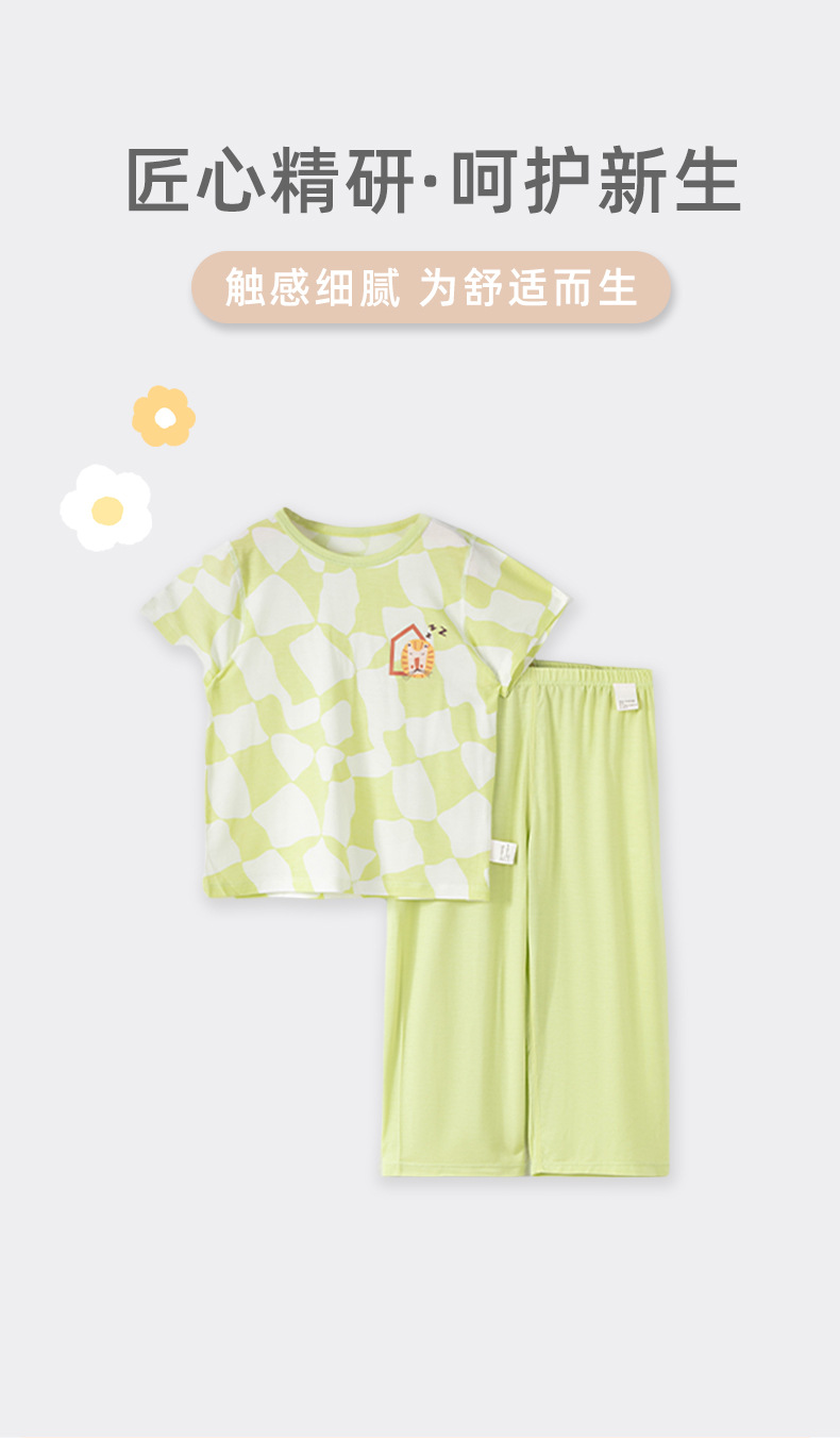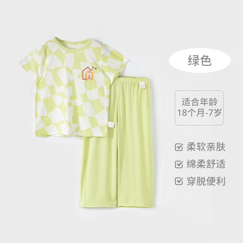아기 세트 유코시 여름 얇은 소년과 소녀 아기 반팔 투피스 세트 어린이 홈 옷 바지 세트 여름스토어 가기