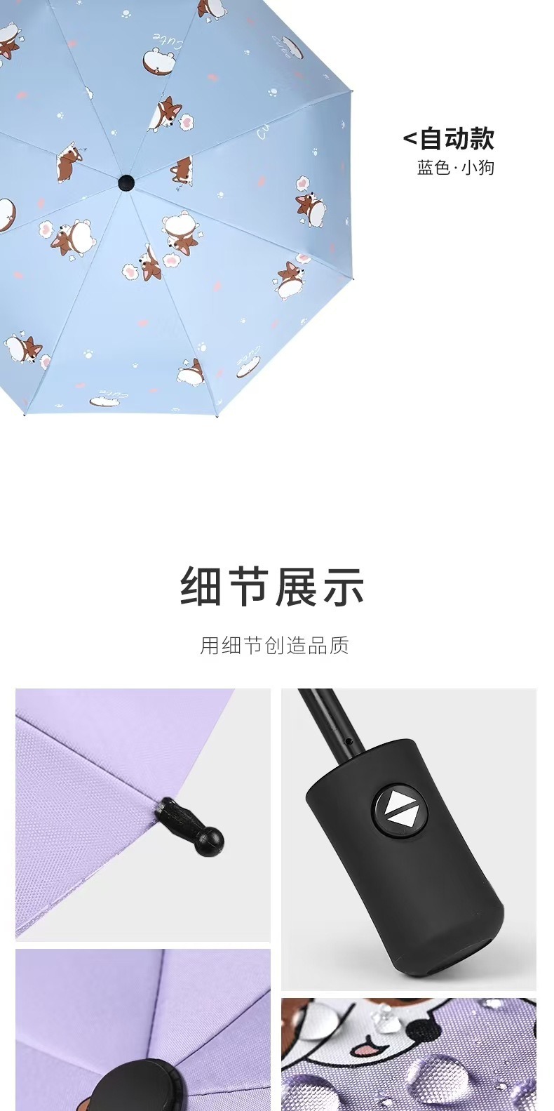 여성용 귀여운 스타일 완전 자동 우산, 비가 오나 눈이 오나, 접이식 자외선 차단 태양 우산, 학생 남성용 파라솔