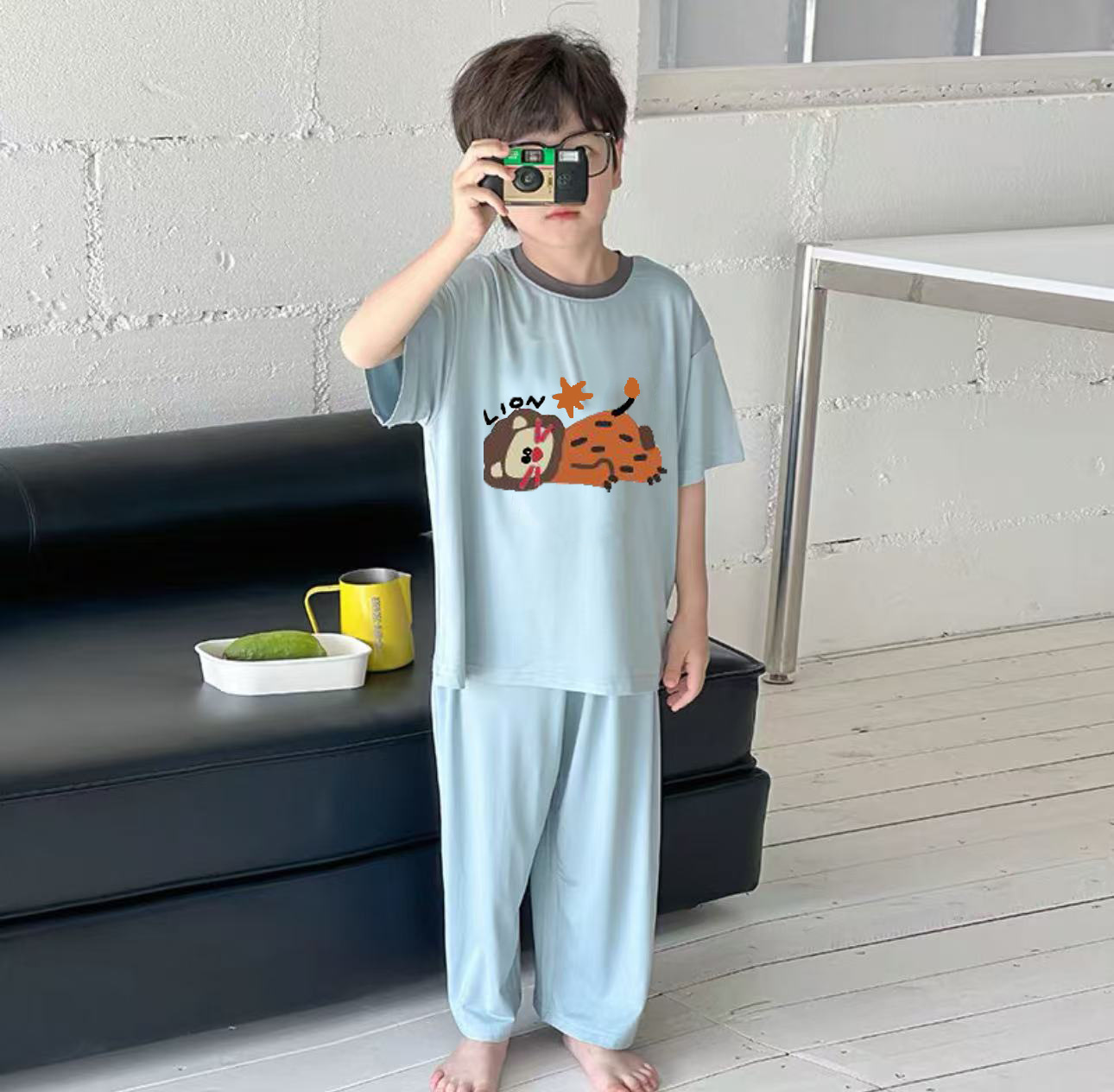여름 새로운 모달 가정 의류 아동복 반팔 잠옷 소년과 소녀 가볍고 통기성 여름 에어컨 의류스토어 가기