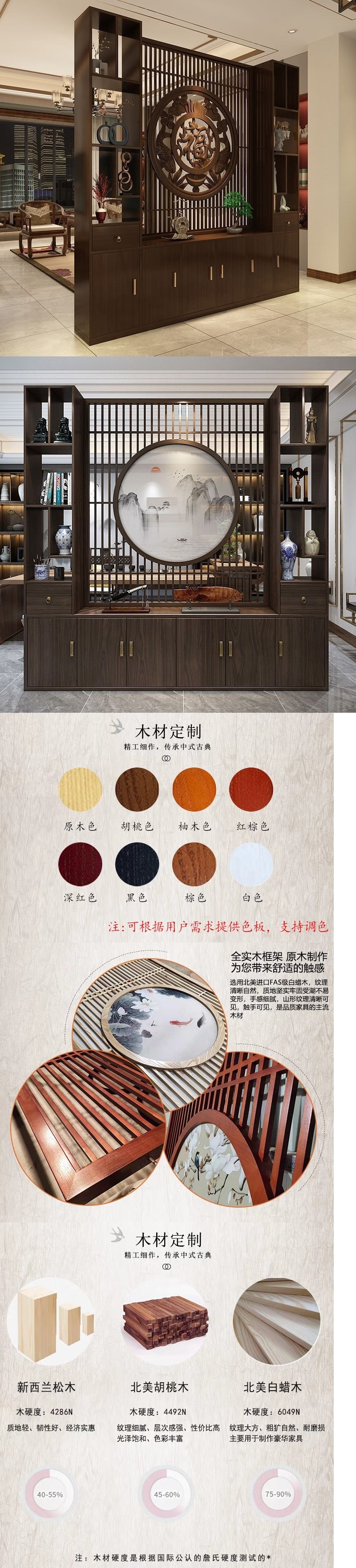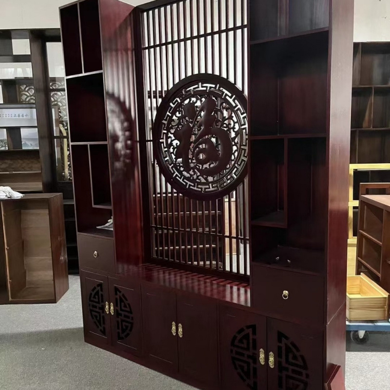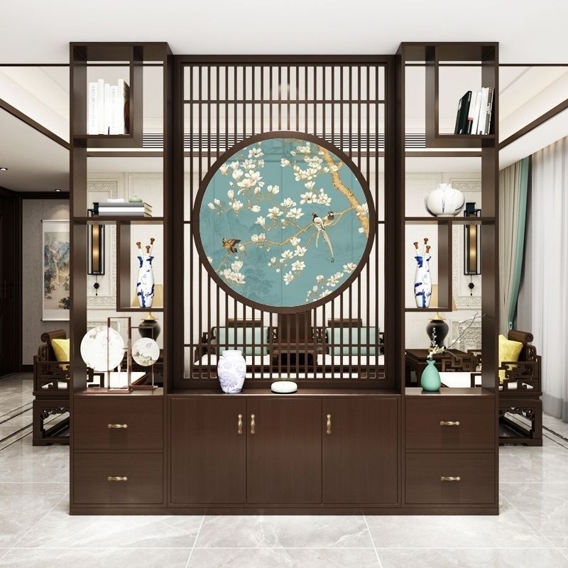 새로운 새로운 중국 스타일 단단한 나무 스크린 파티션 캐비닛 거실 TV 배경 벽 입구 차단 홈 스토리지 랙