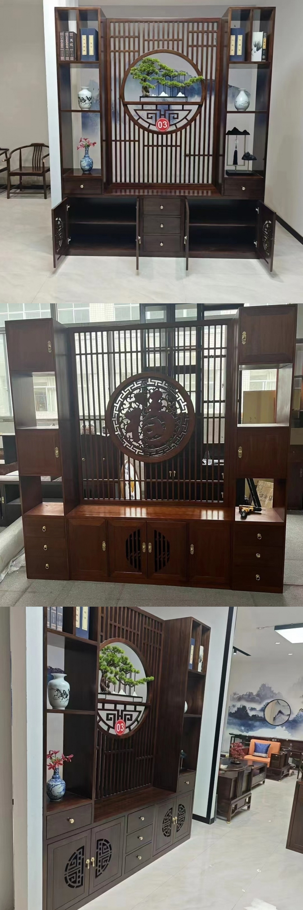 새로운 새로운 중국 스타일 단단한 나무 스크린 파티션 캐비닛 거실 TV 배경 벽 입구 차단 홈 스토리지 랙스토어 가기