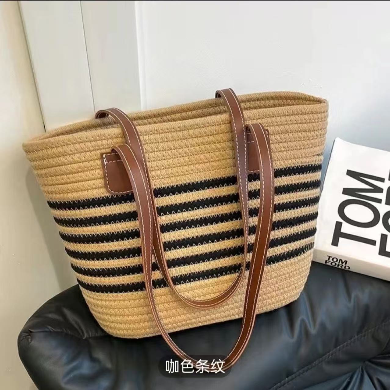 대용량 손으로 짠 가방 2025 이른 봄 새로운 토트 가방 여성 Instagram 스타일 해변 휴가 가방스토어 가기