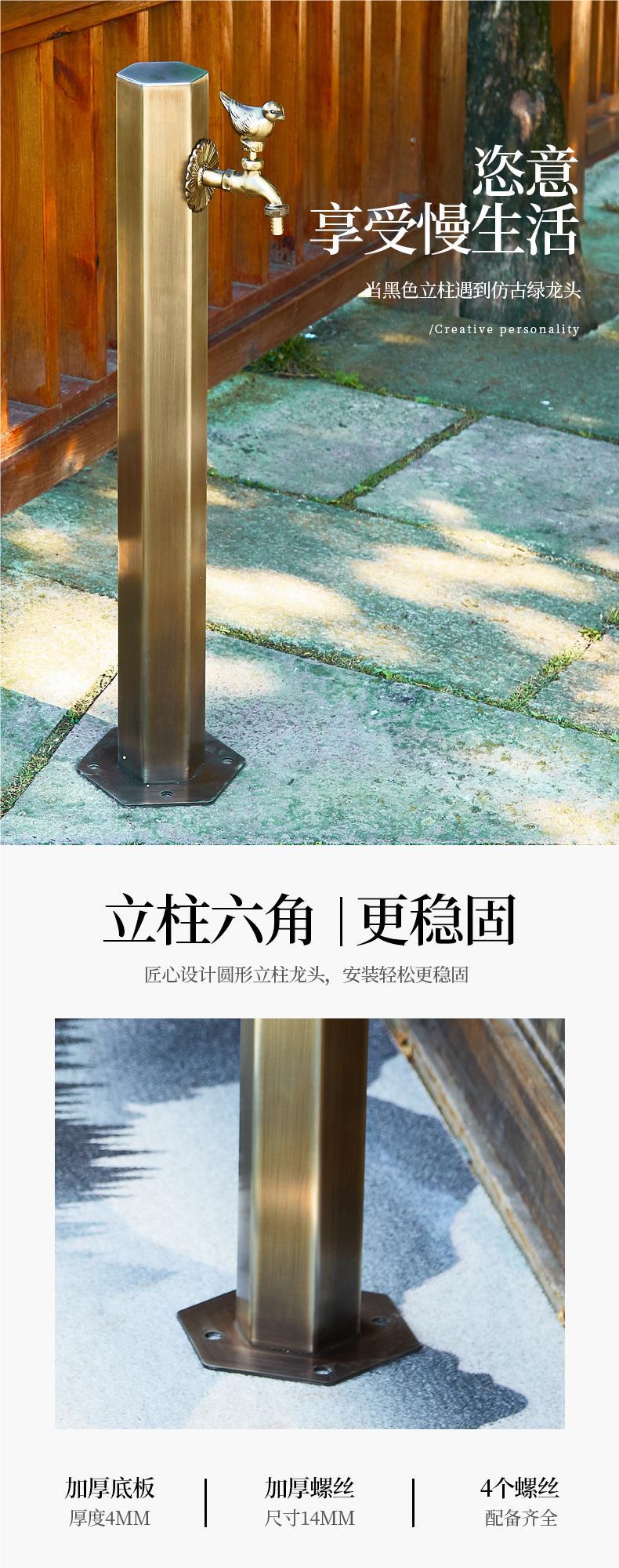 모든 구리 골동품 야외 4 점 수도꼭지 기둥 형 냉동 균열 방지 야외 정원 안뜰 가정용 수도관 수직 소화전