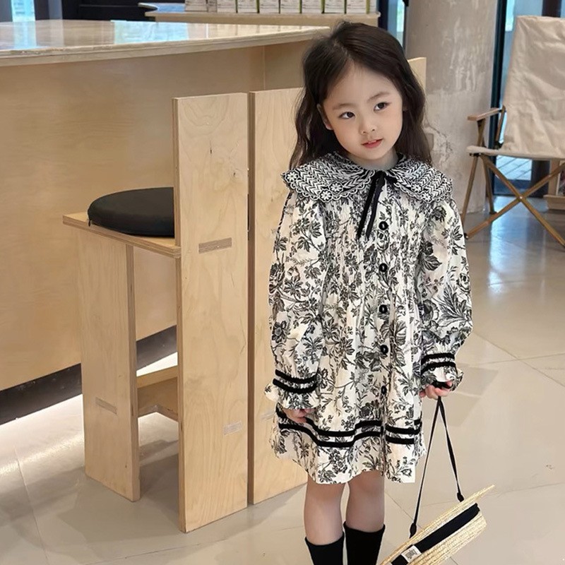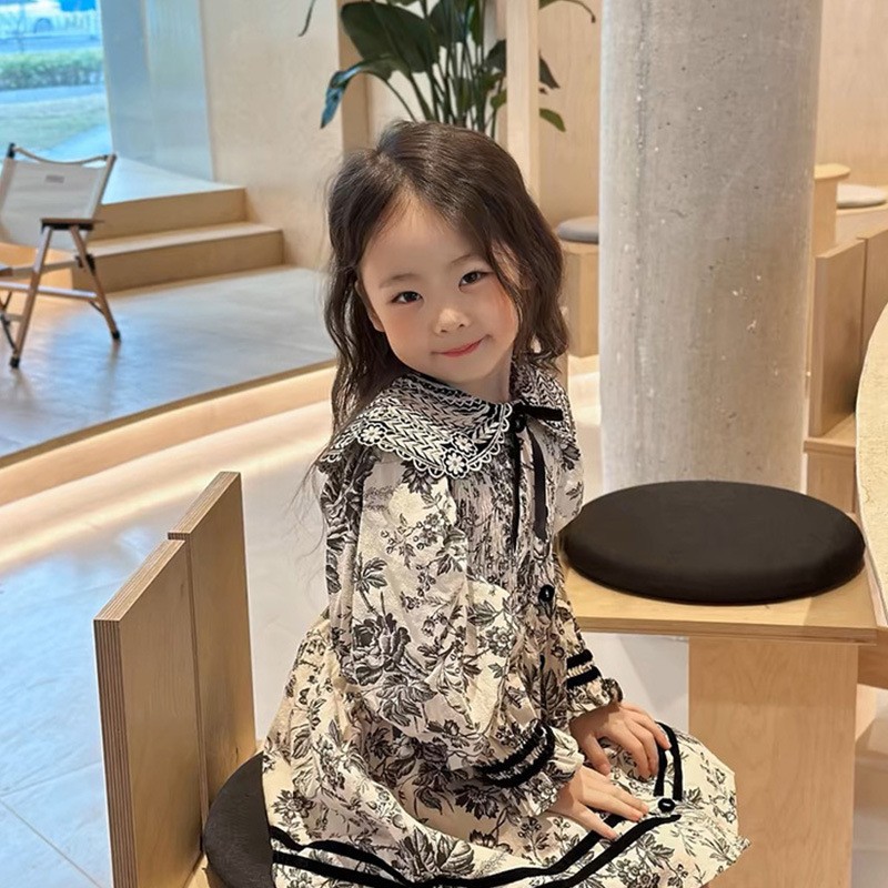 2024 봄과 가을 새 소녀의 세련된 서양식 캐주얼 원피스 트렌디 원피스 소녀의 자수 된 엘꽃스토어 가기
