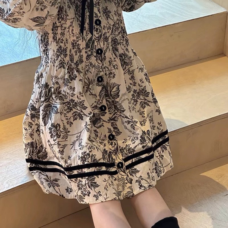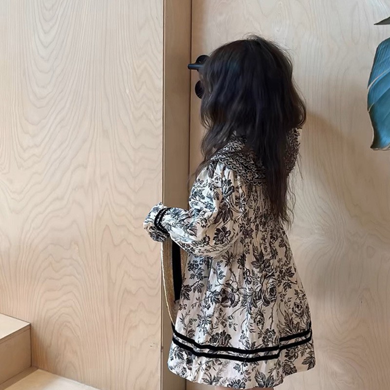 2024 봄과 가을 새 소녀의 세련된 서양식 캐주얼 원피스 트렌디 원피스 소녀의 자수 된 엘꽃