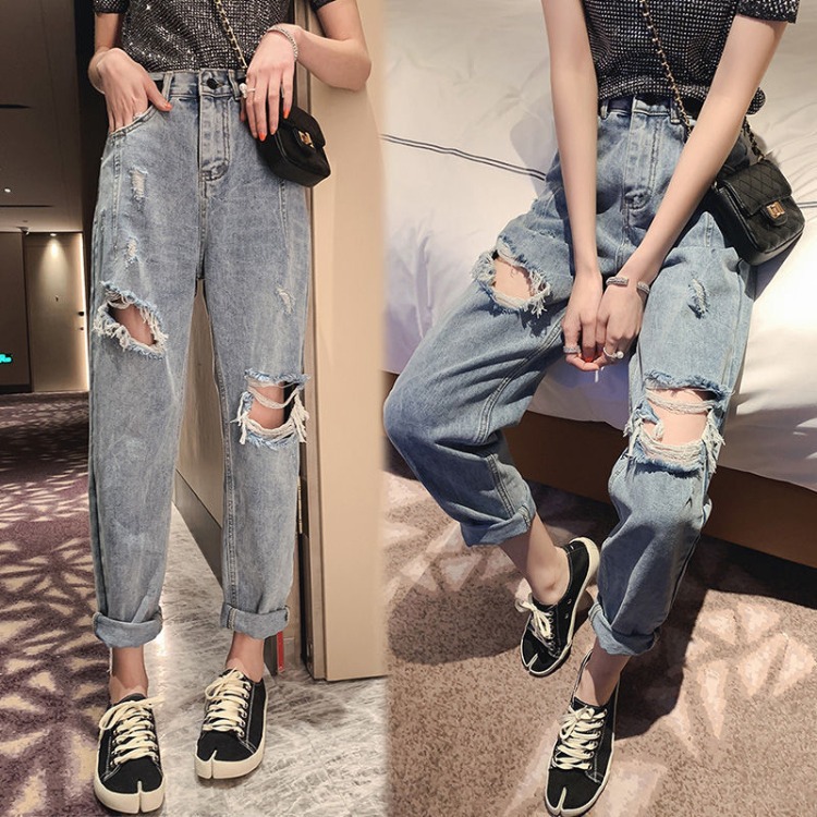 플러스 사이즈 통통녀 찢어진 9 점 스트레이트 청바지 여자 2025 가을 새로운 느슨한 엉덩이 큰 거지 아빠 바지 여자스토어 가기