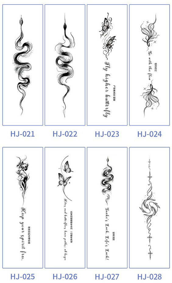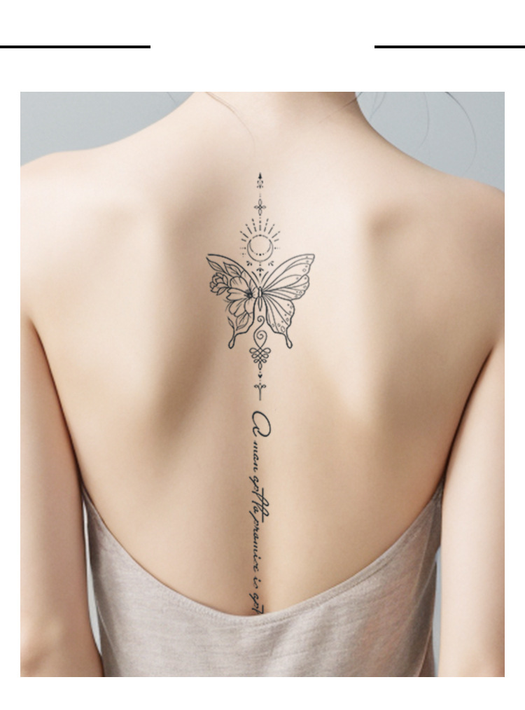 나비 문신 스티커 방수 여성의 오래 지속되는 섹시 백 척추 영어 편지 초본 시뮬레이션 주스 반영구적스토어 가기
