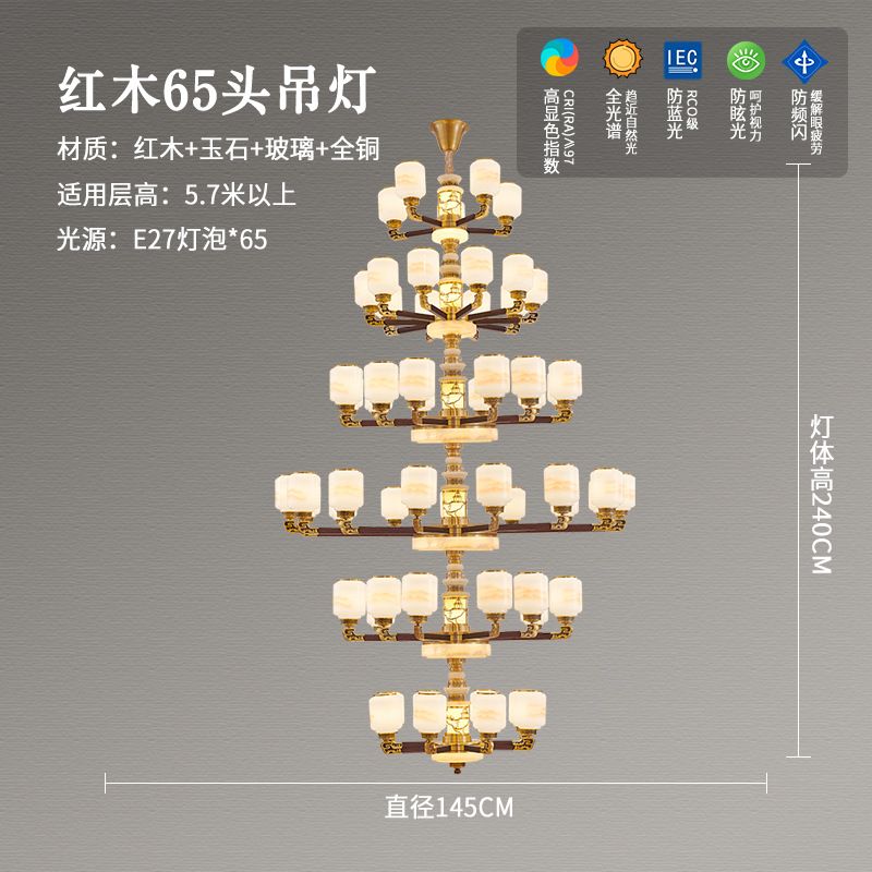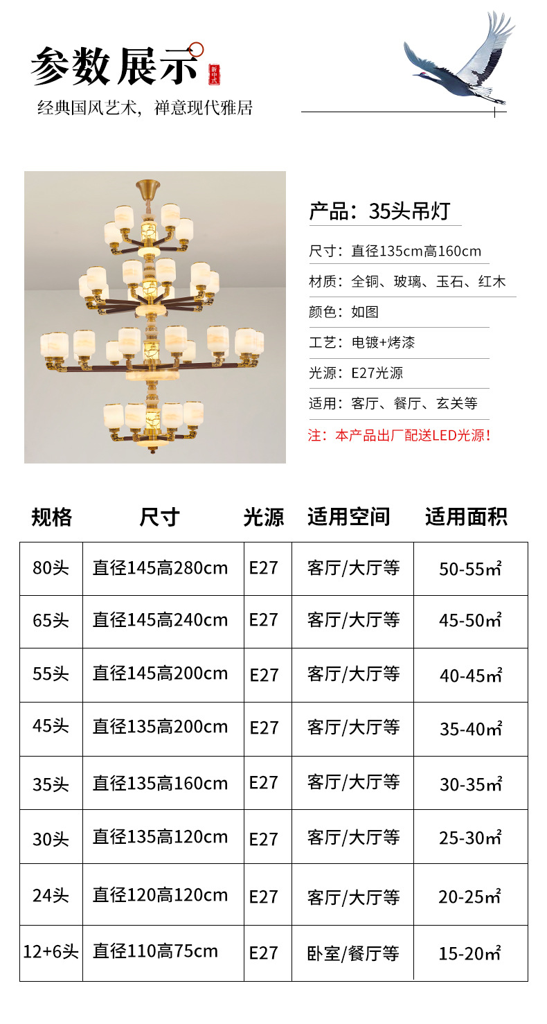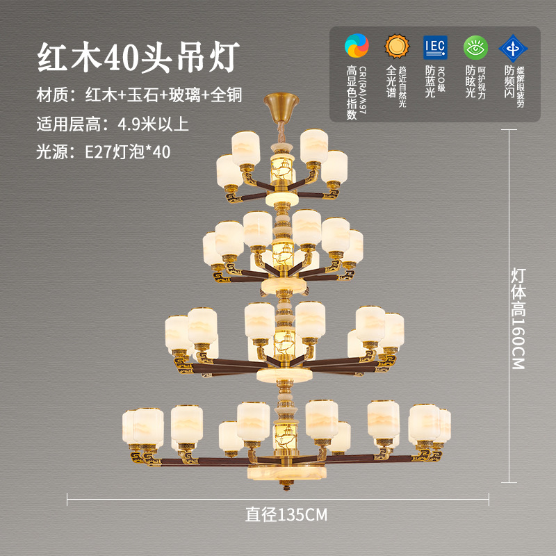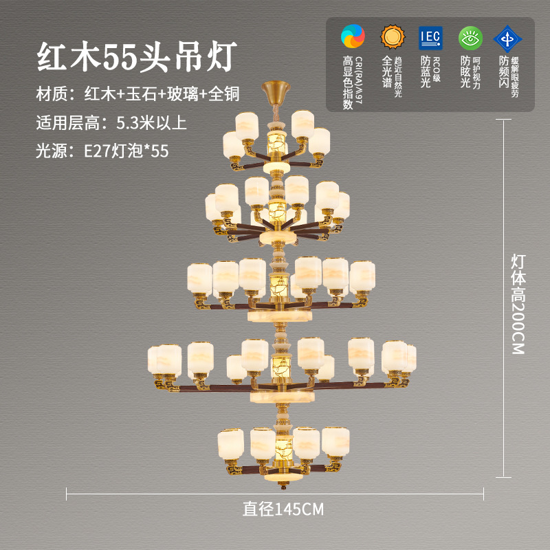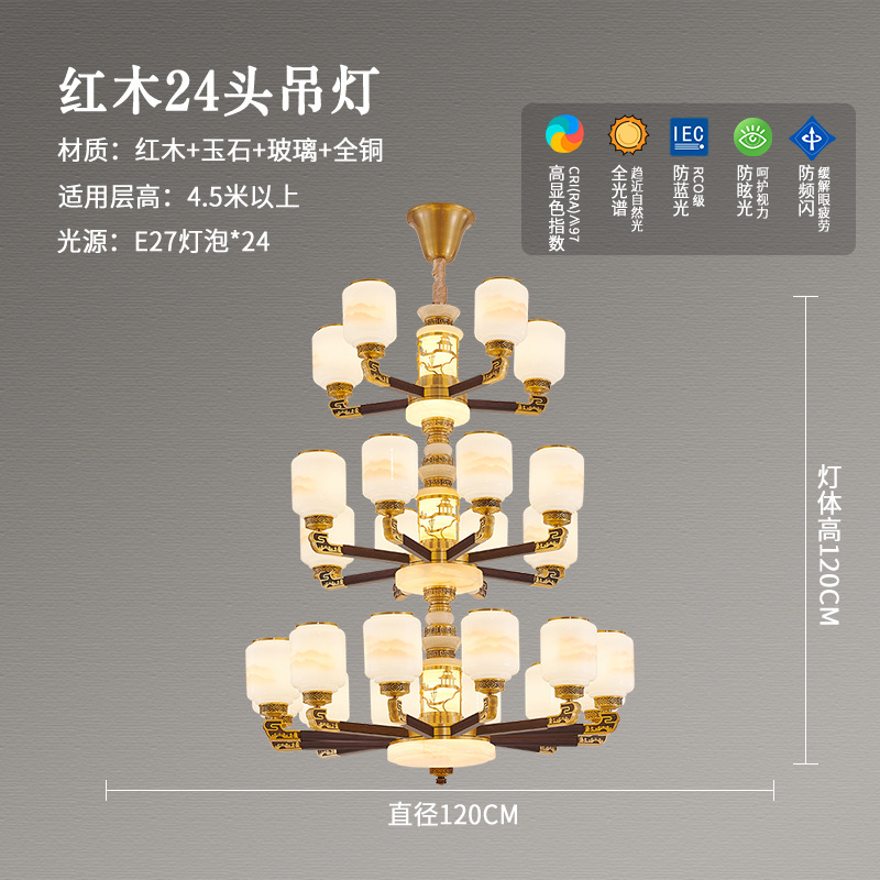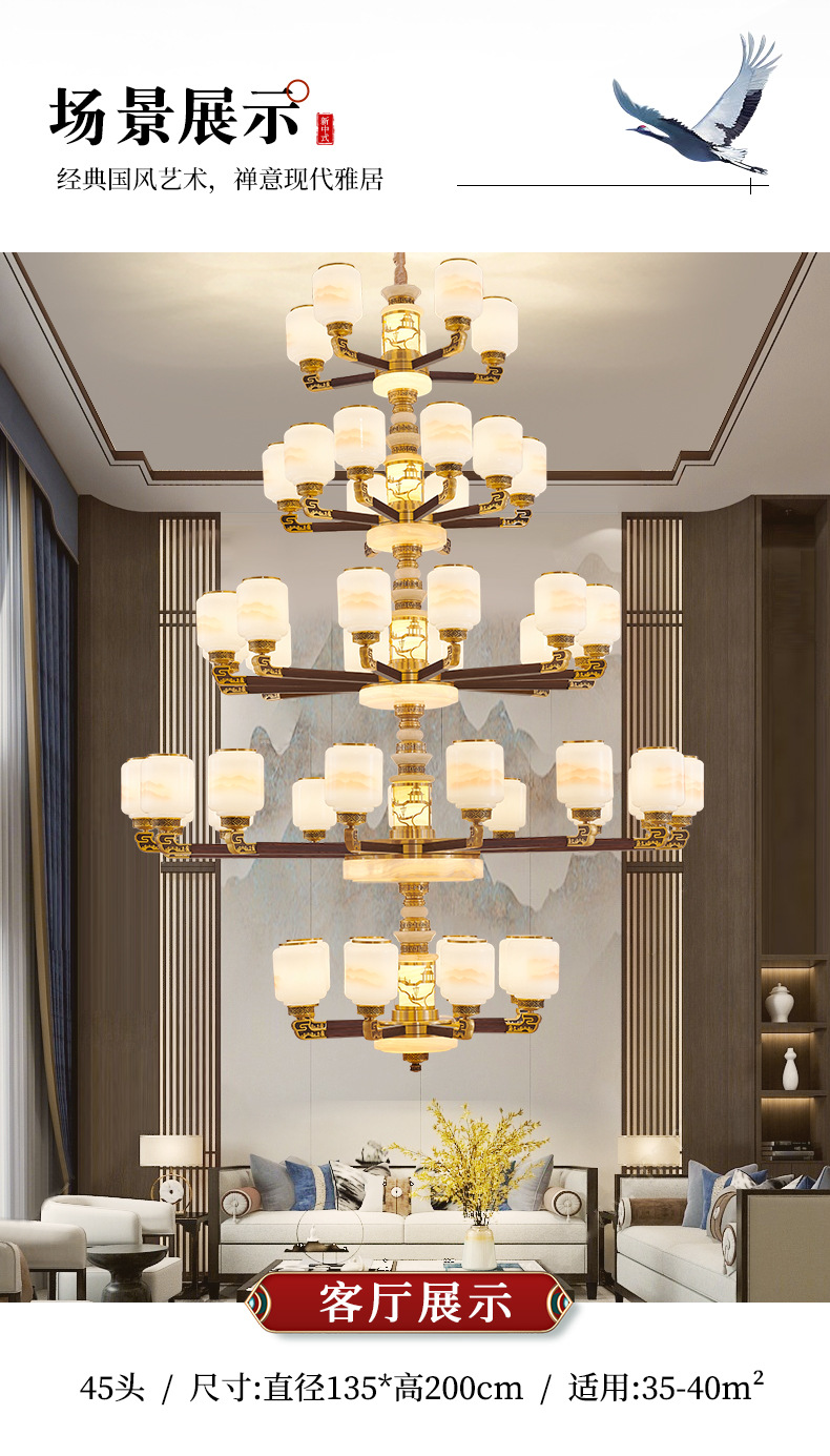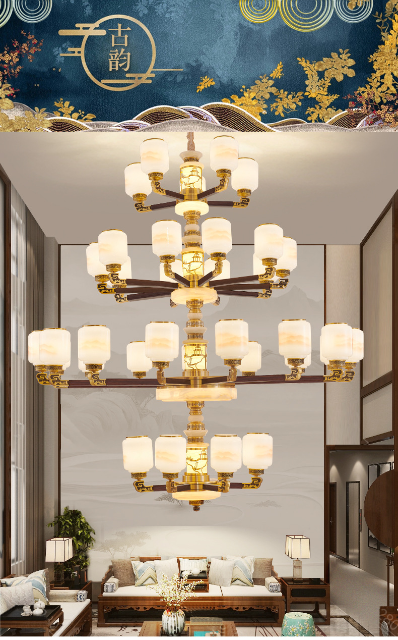 새로운 중국 스타일 모든 구리 거실 샹들리에 현대 간단한 중국 스타일 자체 건축 주택 빌라 홀 샹들리에 광동 램프