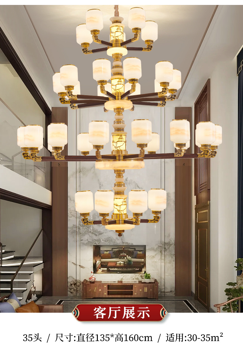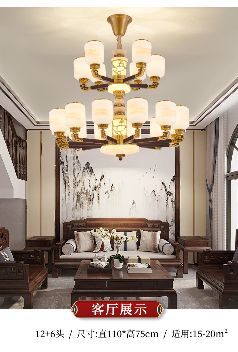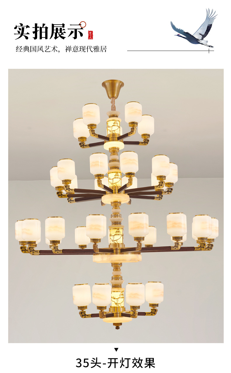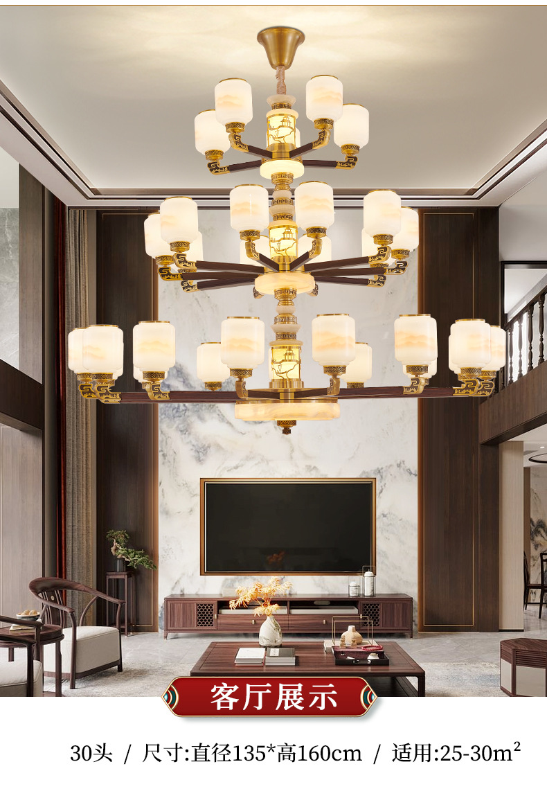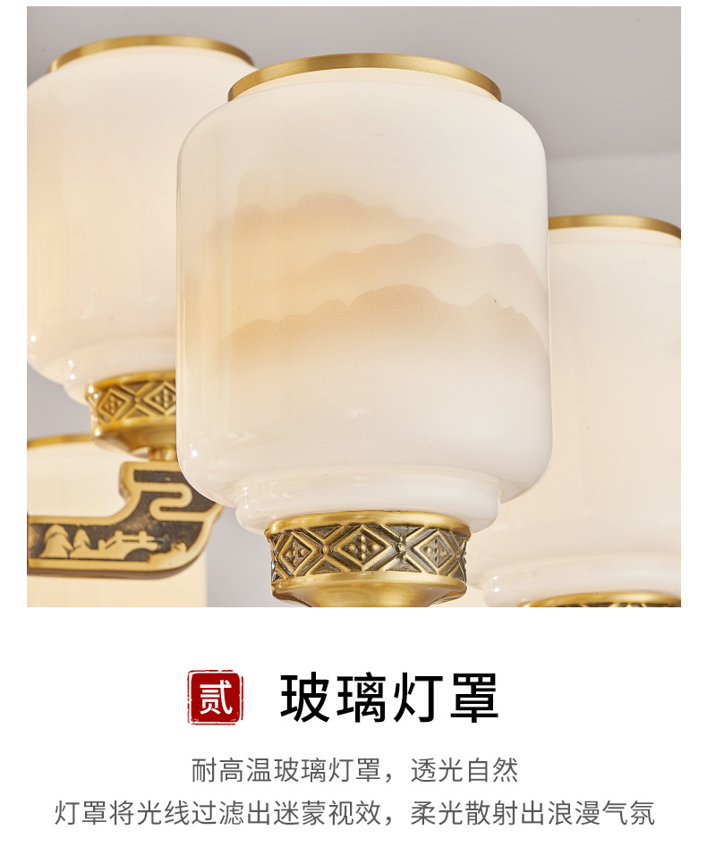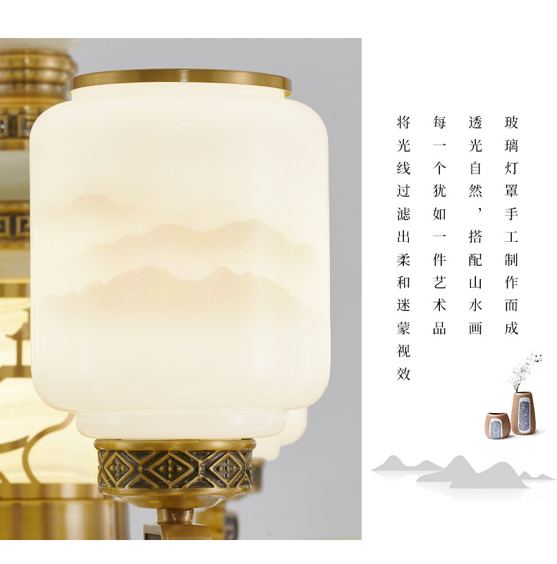 새로운 중국 스타일 모든 구리 거실 샹들리에 현대 간단한 중국 스타일 자체 건축 주택 빌라 홀 샹들리에 광동 램프스토어 가기