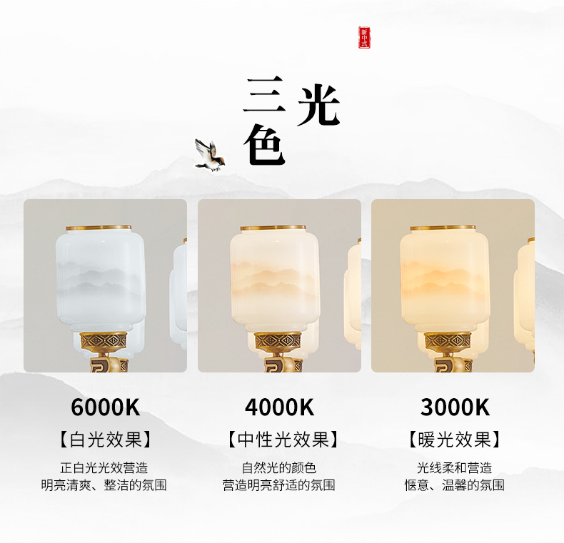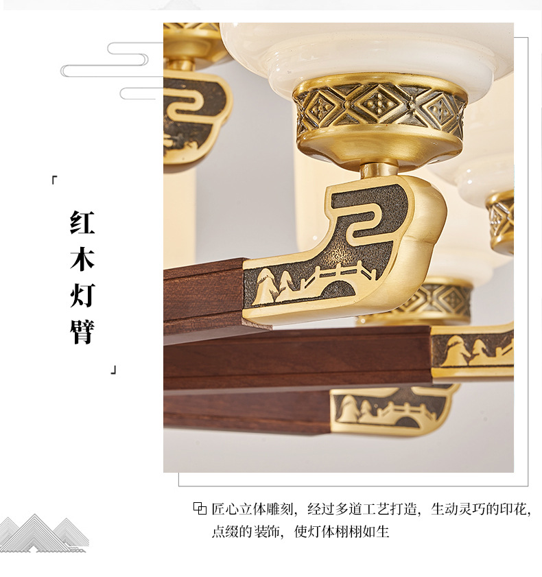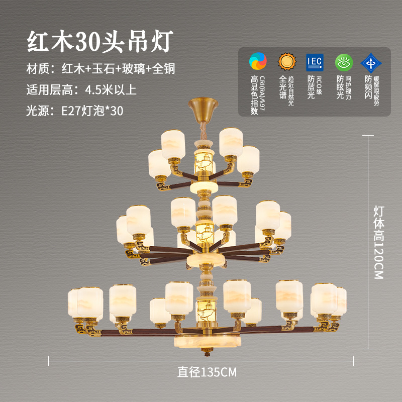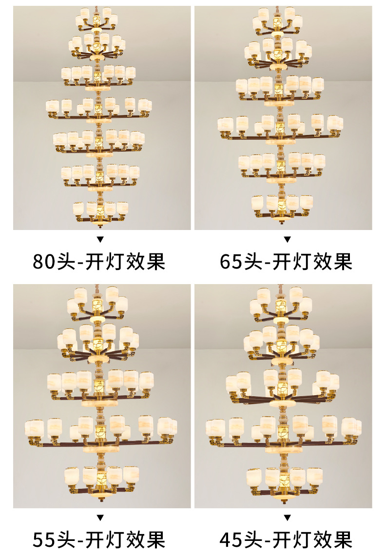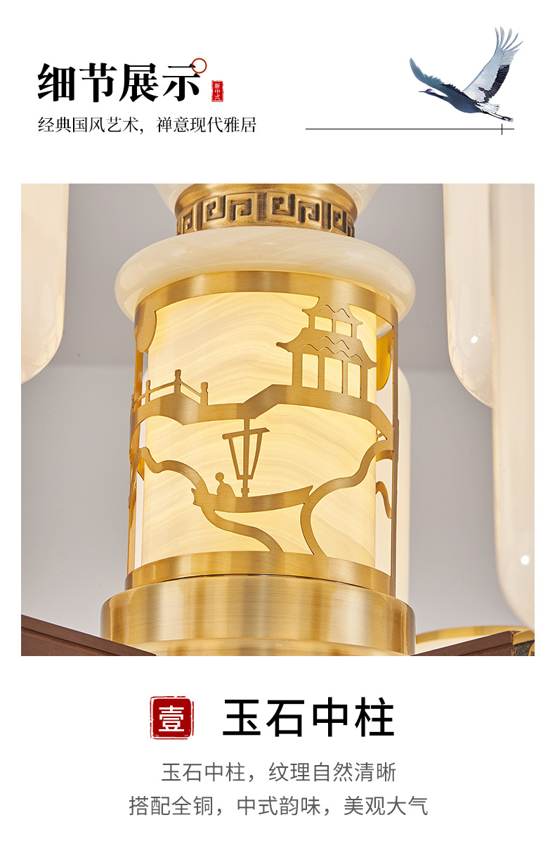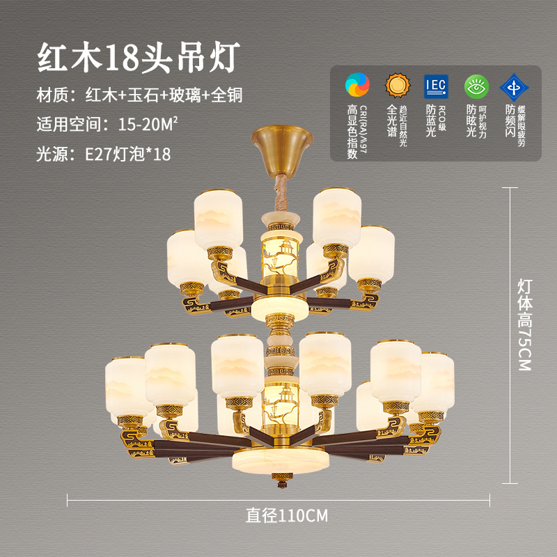 새로운 중국 스타일 모든 구리 거실 샹들리에 현대 간단한 중국 스타일 자체 건축 주택 빌라 홀 샹들리에 광동 램프스토어 가기