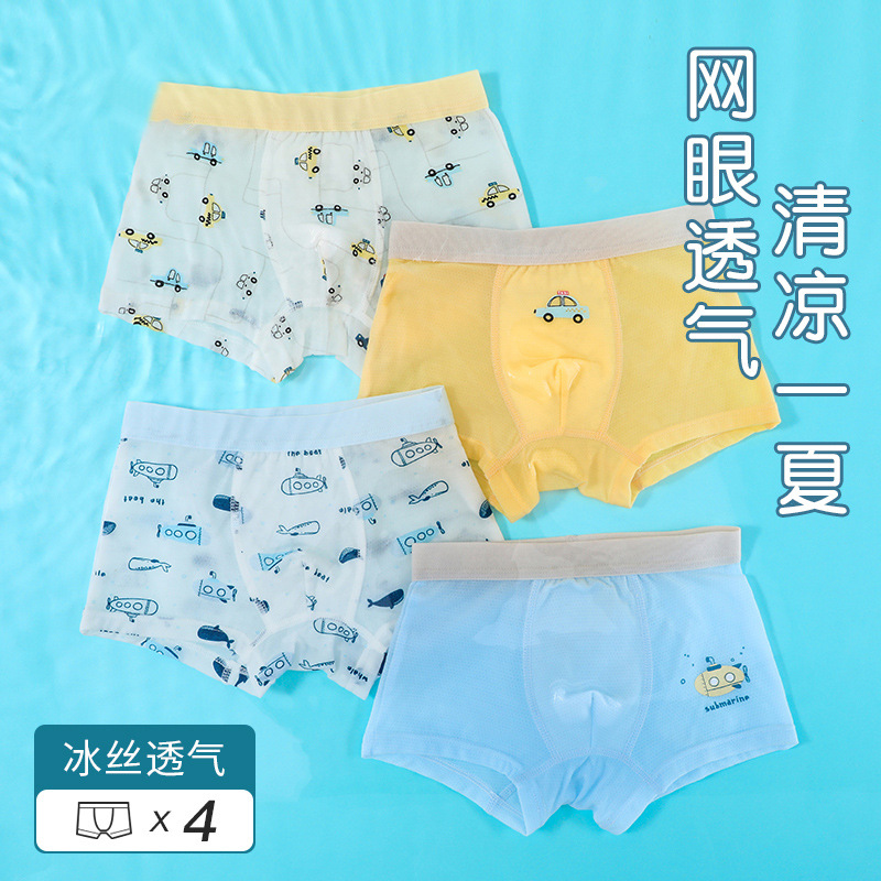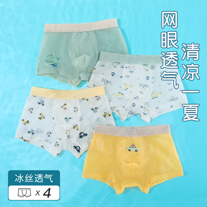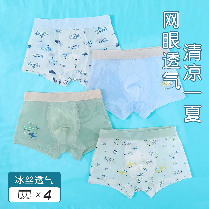 소년 속옷 아이스 실크 보이의 플랫 앵글 얇은 퓨어 코튼 크로치 중간 및 큰 어린이 학생 4 코너 어린이 속옷 패딩 엉덩이스토어 가기